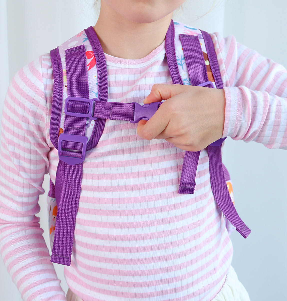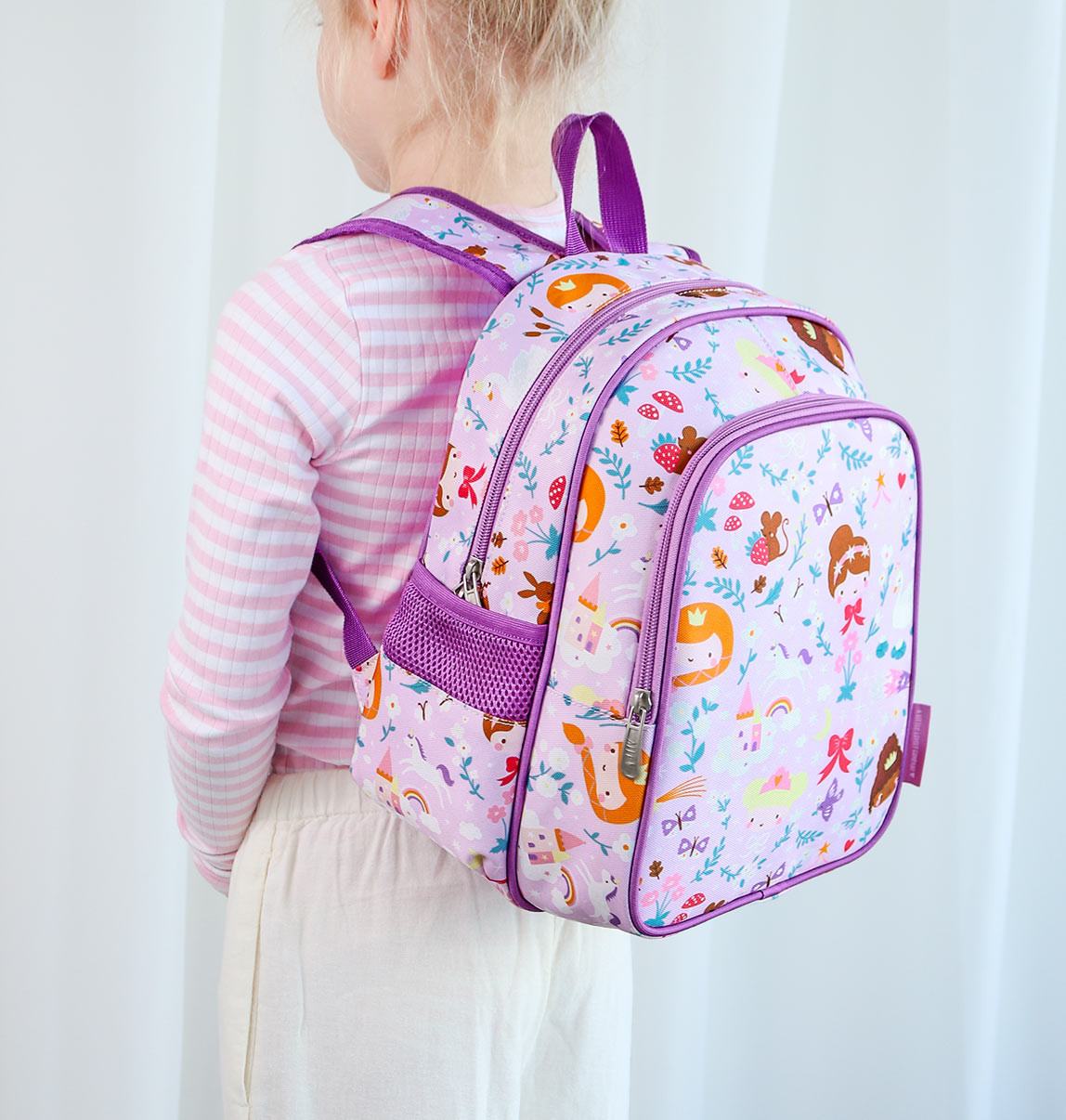 Dětský batůžek je ideální do školky nebo na cesty. Batoh má prostornou hlavní komoru, izolovanou přední kapsu na svačinu a nápoje. Láhev na pití se vejde i do jedné ze dvou bočních kapes. Praktické jsou polstrované ramenní popruhy a hrudní popruh proti sklouznutí z ramen. Zadní panel je polstrovaný pro větší pohodlí a je vybaven prodyšnou tkaninou.