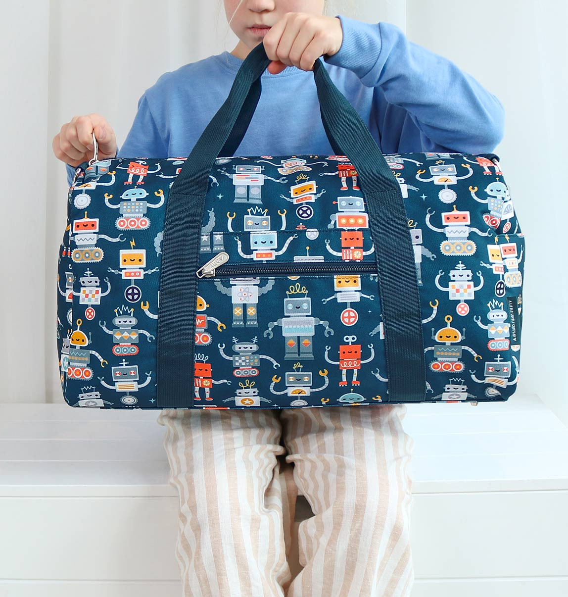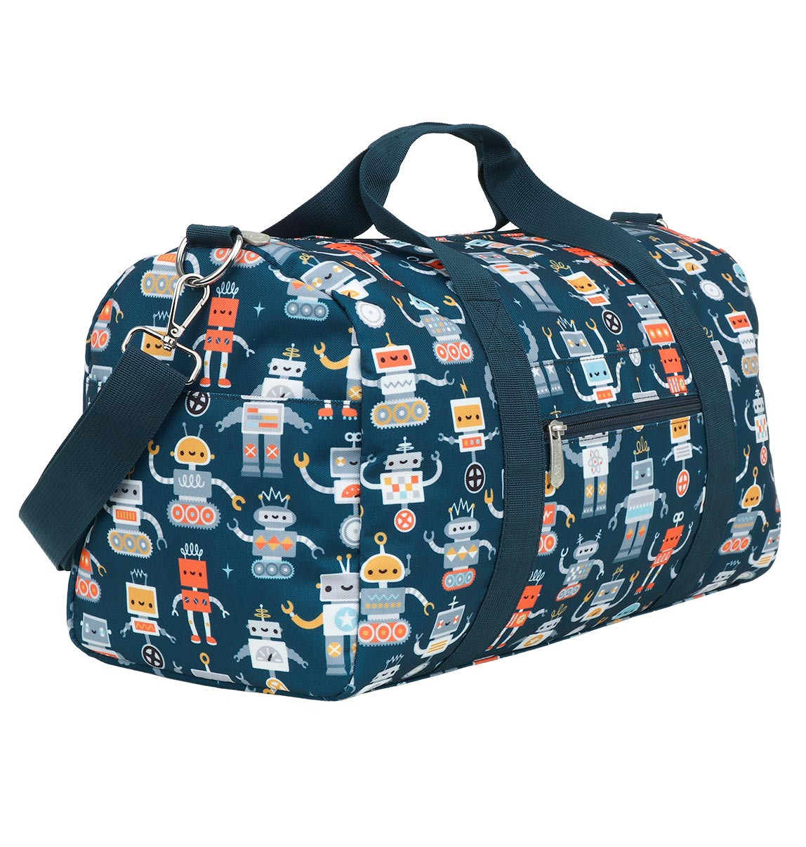 Dětská cestovní taška na sportovní kroužky nebo výlet. Taška má dvě ucha do ruky a jeden odnímatelný ramenní popruh. Polyesterový materiál je pevný, lehký a zdobí ho barevný potisk. Prostorná hlavní komora s další kapsou, dvě boční kapsy a přední přihrádka na zip poskytují dostatek prostoru na vše potřebné. Taška se hodí pro děti také jako příruční zavazadlo do letadla.