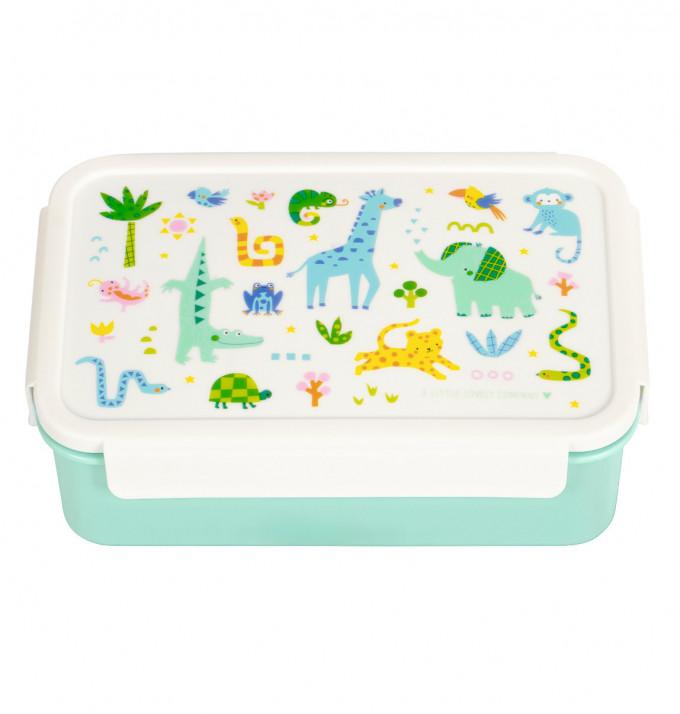 Tento praktický svačinový box se zvířaty z džungle se stane perfektním společníkem dětí do školy nebo na výlety. Díky vzduchotěsnému zacvakávacímu víku a vyjímatelné nádobce se dvěma přihrádkami bude každá svačinka přehledně uspořádaná po celý den. Ideální pro chutný a pestrý oběd či svačinu do školy nebo na cesty.