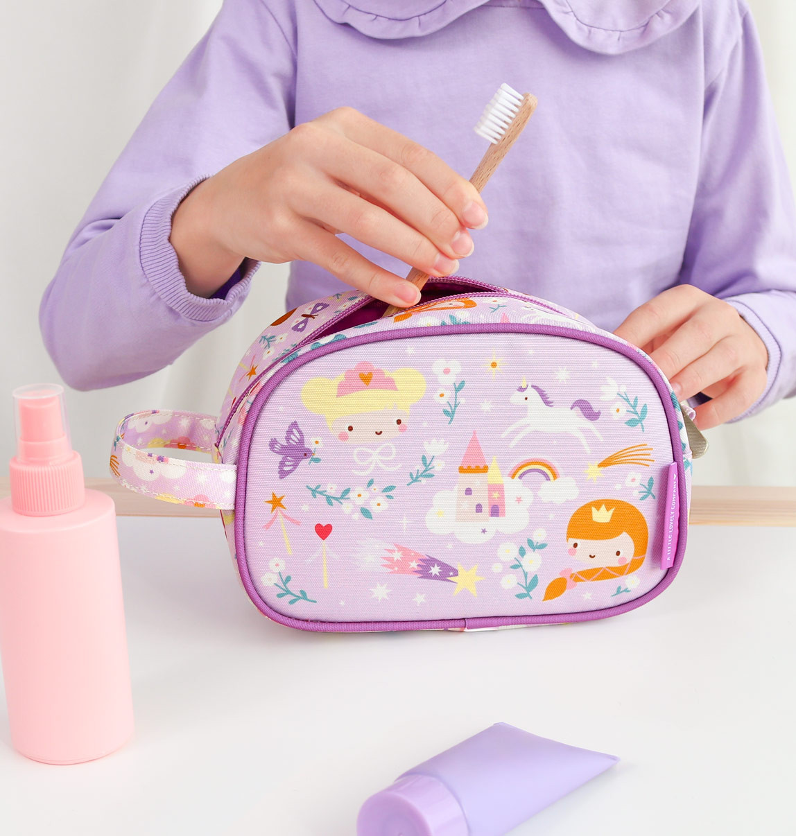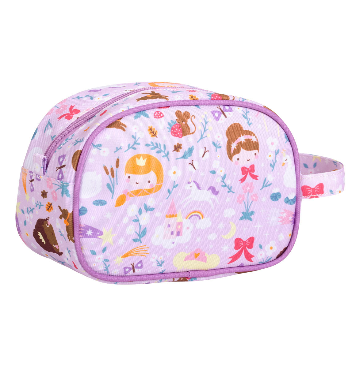 Toaletní taštička s princeznami je ideální na výlety, na letní tábory nebo na dovolenou. Taštička nabízí prostornou přihrádku s dostatkem místa šampon, mýdlo, zubní kartáček, zubní pastu a další nezbytné potřeby. Toaletní taštička má také praktickou rukojeť pro snadné přenášení a zavěšení.