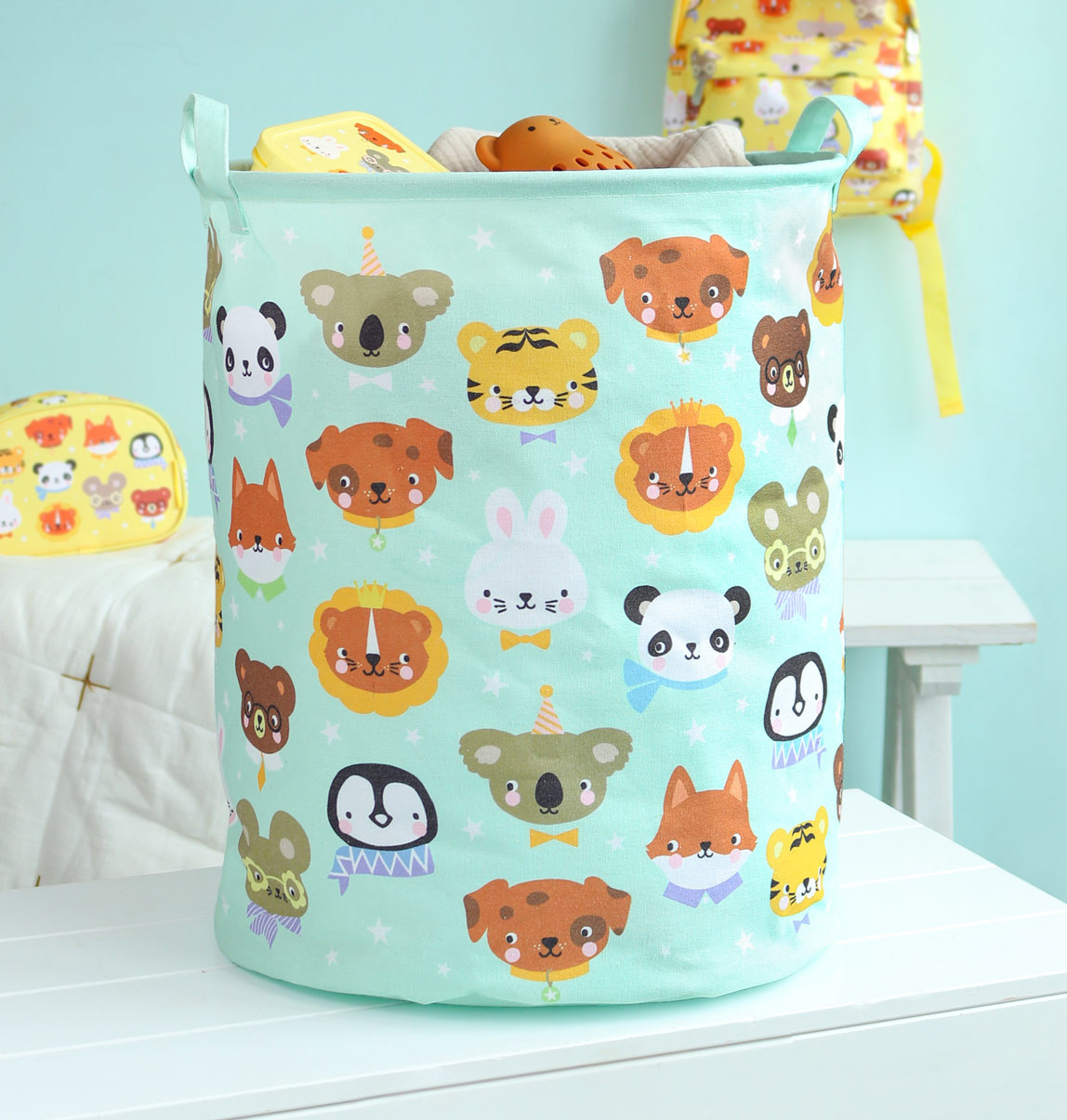 Prostorný úložný koš je ideální pro uložení hraček. Díky PE zátěru na vnitřní straně lze koš využít i pro sběr prádla. Pokud se košík nepoužívá, lze ho snadno složit a uklidit, ale vypadá velmi pěkně i jako dekorace v pokoji.
