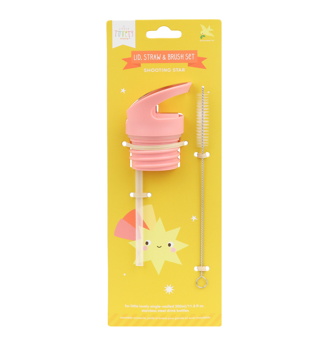 Sada skládající se z uzávěru, kartáčku a brčka pro nerezové láhve na pití o objemu 350 ml a 500 ml od značky A Little Lovely Company.