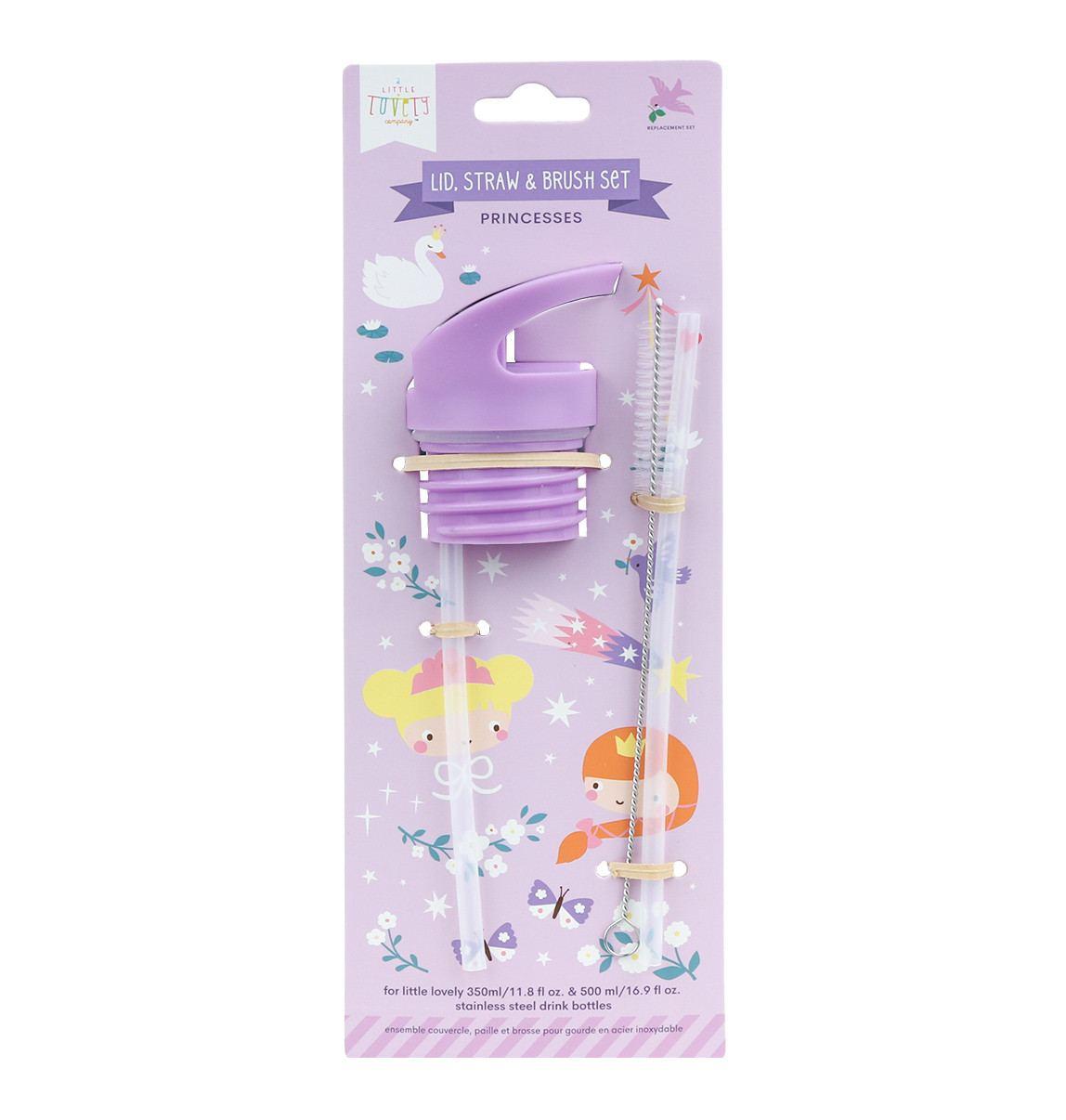 Sada skládající se z uzávěru, kartáčku a brčka pro nerezové láhve na pití o objemu 350 ml a 500 ml od značky A Little Lovely Company.