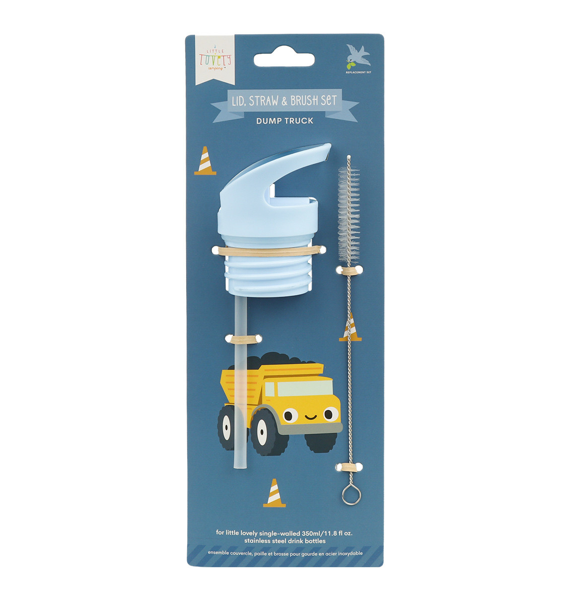 Sada skládající se z uzávěru, kartáčku a brčka pro nerezové láhve na pití o objemu 350 ml a 500 ml od značky A Little Lovely Company.
