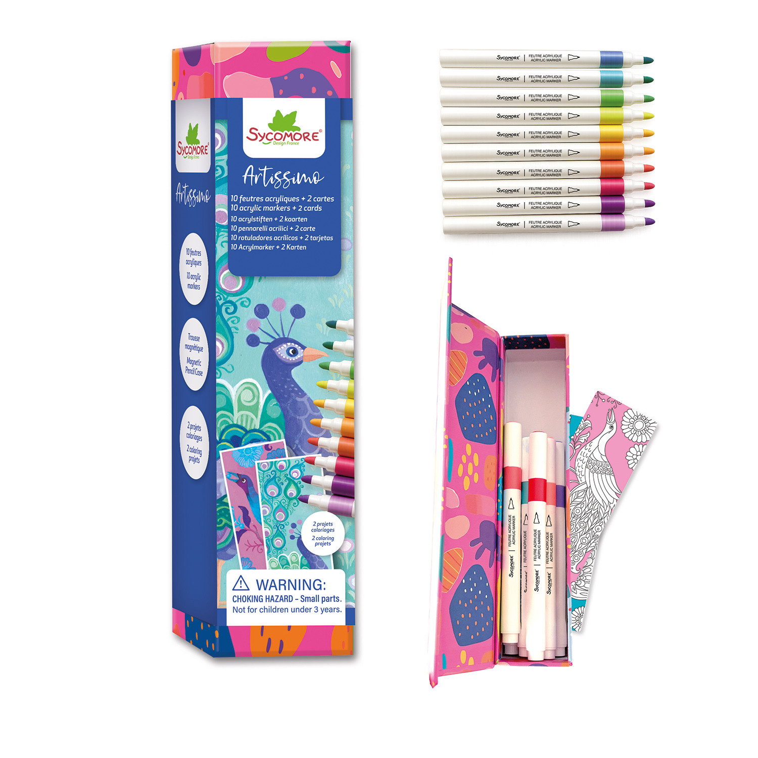 Tato sada obsahuje 10 akrylových fixů s intenzivními, vysoce krycími barvami, které snadno nanesete na různé povrchy, jako je papír, karton, dřevo, kámen a další. Fixy se příjemně používají a jsou ideální pro tvorbu výrazných a pestrobarevných dílek. Součástí balení jsou 2 omalovánky, které vám umožní si fixy hned vyzkoušet.