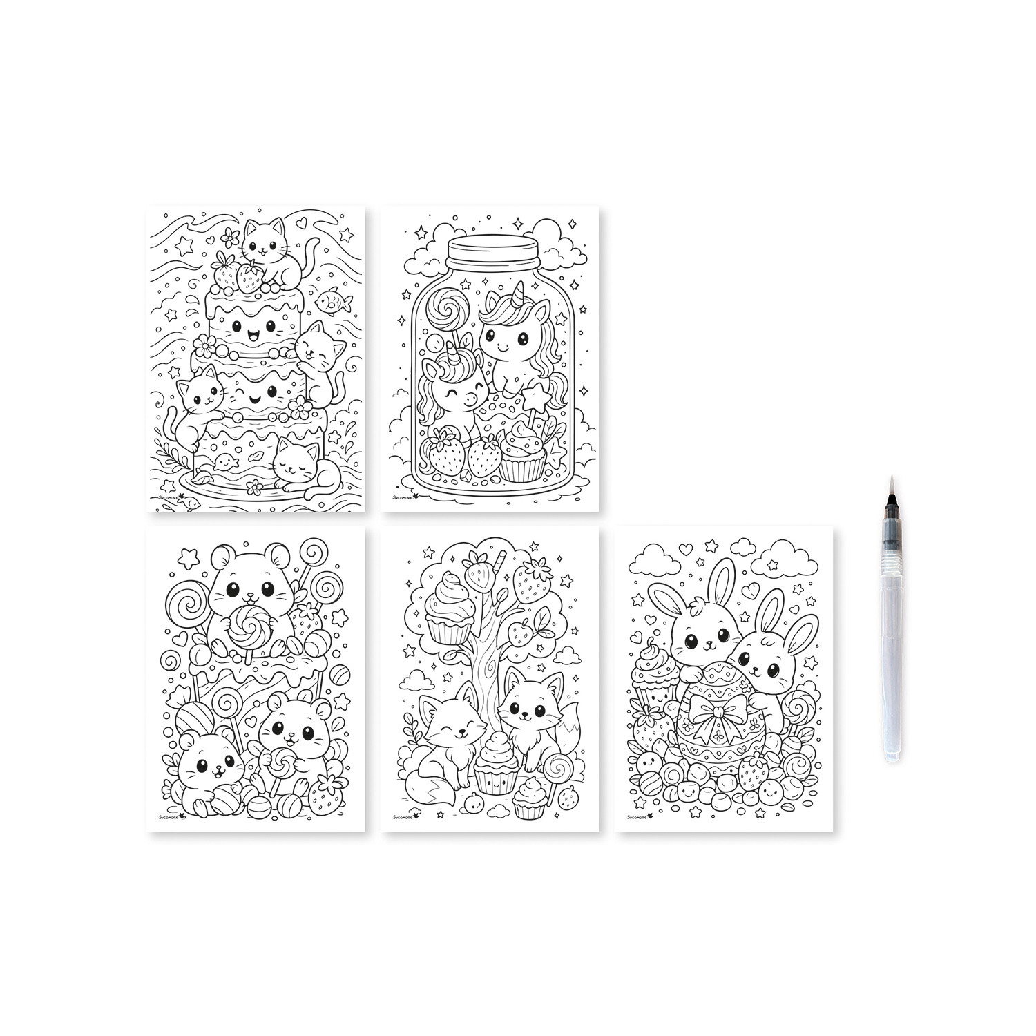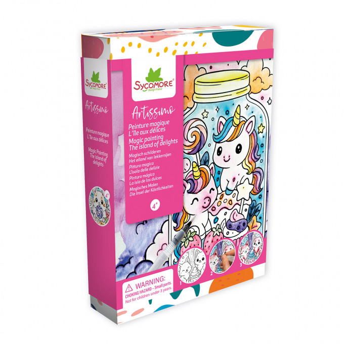 Tato kouzelná sada umožní dětem od 4 let stát se umělcem snadno a rychle! V krabičce najdete 5 nádherných obrázků s motivy kouzelných zvířátek a štětec. Stačí namočit štětec do vody a přetřít s ním bílé plochy mezi černými konturami. Barvy se objeví jako mávnutím kouzelného proutku! Sada je balena v praktické krabičce, ve které si hotová dílka mohou děti uložit.