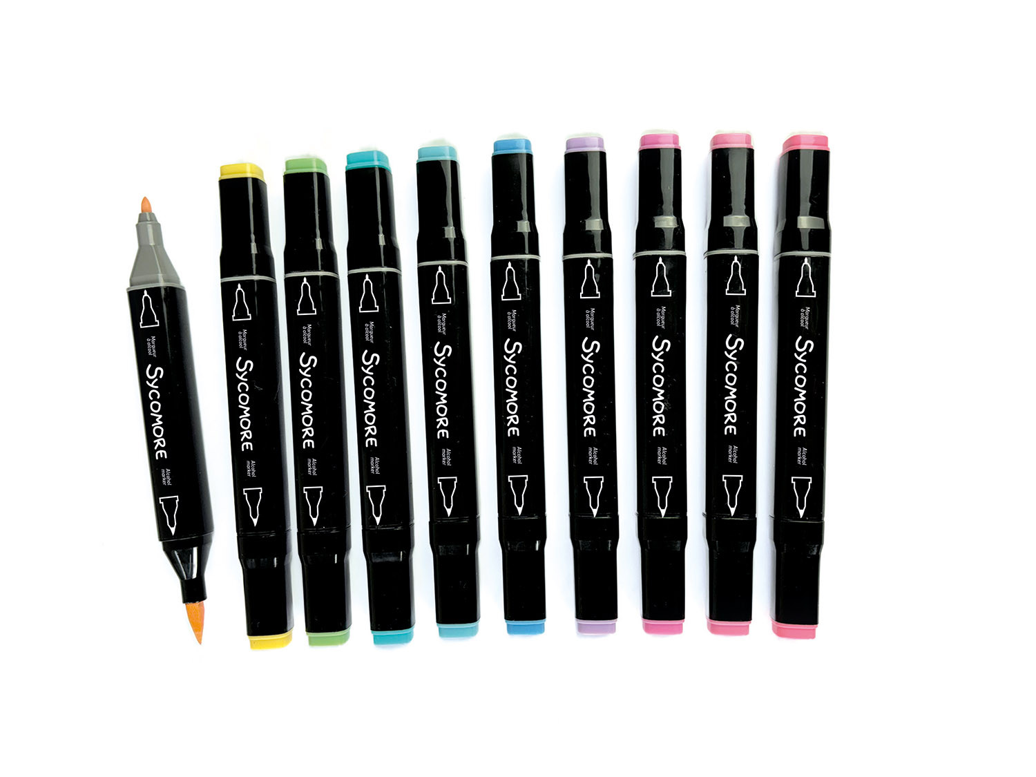 Balení obsahuje: 10 tištěných papírů, 10 lihových fixů se dvěma hroty, návod.