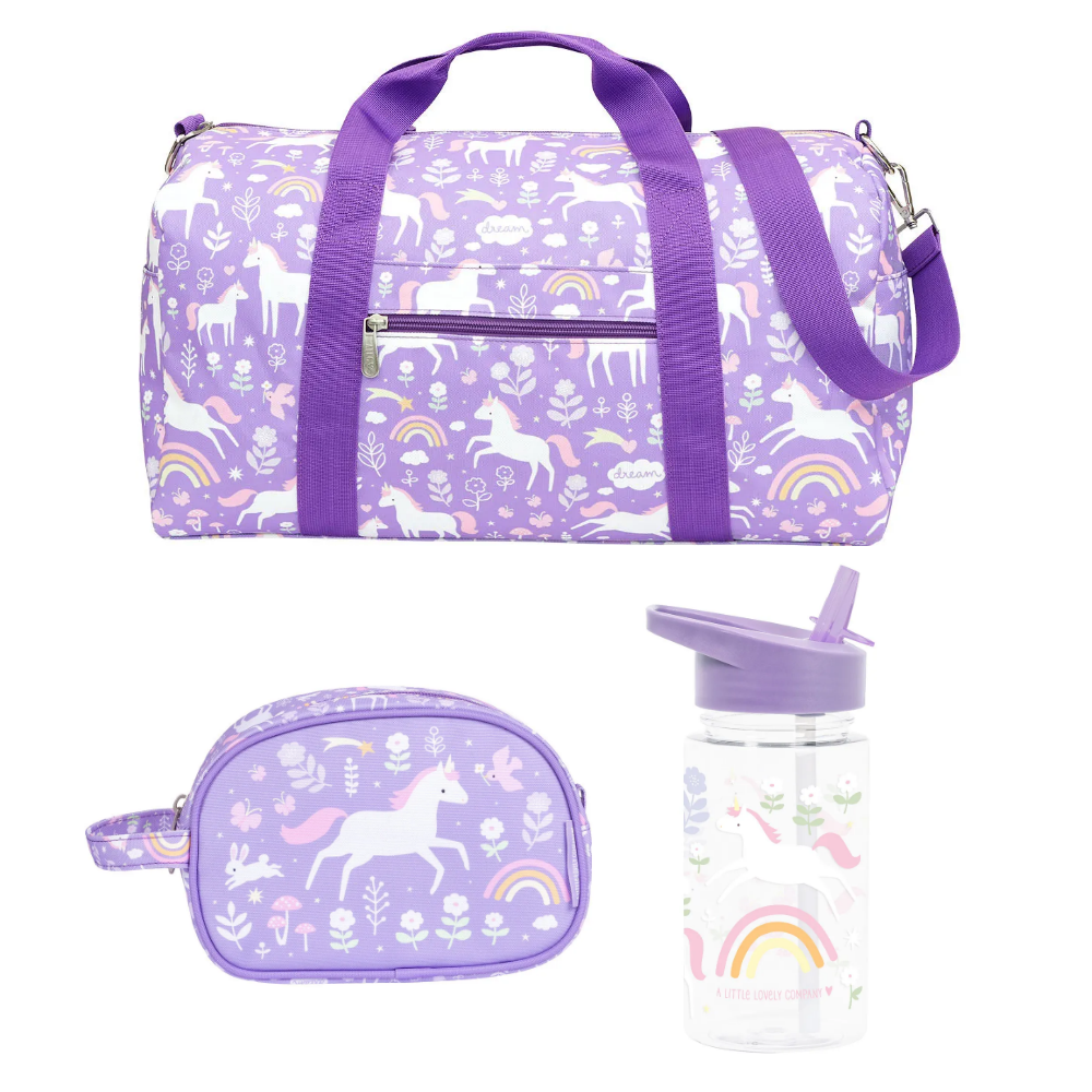 Prostorná cestovní taška, toaletní taštička a lahev na pití - praktická sada ideální pro děti na výlety, sport i víkendové cestování. S tímto setem máte všechny potřebné věci pohromadě a hezky sladěné v jednotném designu. Všechny produkty jsou praktické, odolné a snadno udržovatelné. Kvalitní materiály zaručují dlouhou životnost a pohodlí pro vaše děti.
