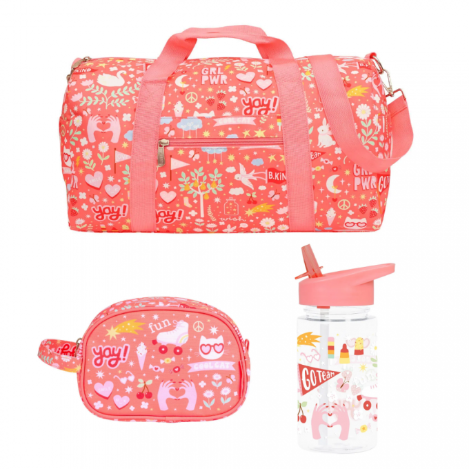 Prostorná cestovní taška, toaletní taštička a lahev na pití - praktická sada ideální pro děti na výlety, sport i víkendové cestování. S tímto setem máte všechny potřebné věci pohromadě a hezky sladěné v jednotném designu. Všechny produkty jsou praktické, odolné a snadno udržovatelné. Kvalitní materiály zaručují dlouhou životnost a pohodlí pro vaše děti.
