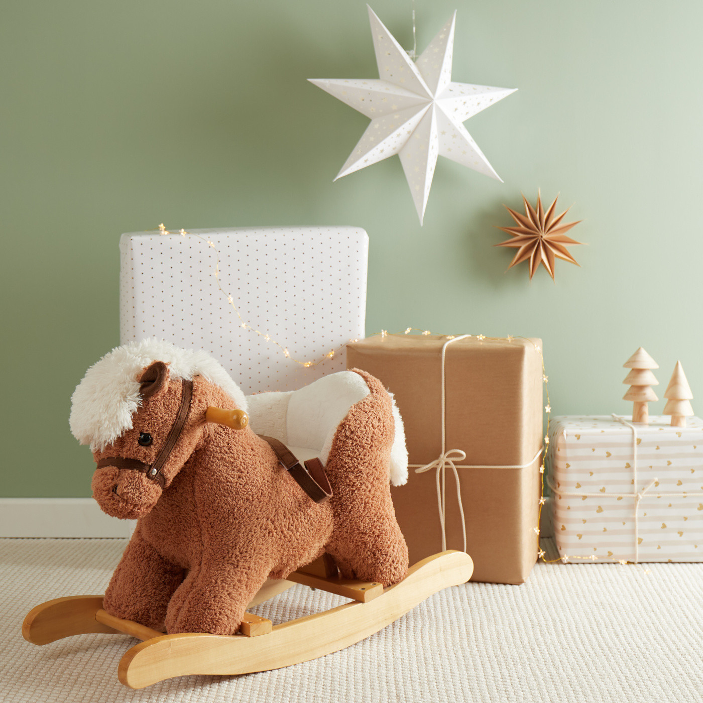 Tato roztomilá houpací hračka v podobě koníka potěší chlapce i holčičky od 9 měsíců! Díky hebkému plyši a pevnému dřevěnému rámu podporuje motorické dovednosti a poskytuje spoustu bezpečné zábavy při houpání.
