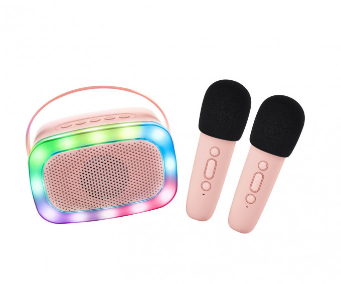 Zpívejte a bavte se kdekoliv a kdykoliv. Ružová karaoke sada je perfektní pro každé dítě od 6 let, které miluje hudbu. Díky Bluetooth připojení ji snadno propojíte se svým chytrým telefonem nebo tabletem a můžete přehrávat hudbu přímo z oblíbeného zařízení – nebo si své oblíbené písničky nahrajete na TF/SD kartu. Díky dvěma mikrofonům a zářivým LED světlům s 5 režimy svícení se tato karaoke sada stane hvězdou každé dětské párty. Reproduktor nabízí čtyři zábavné hlasové efekty, které zajistí nekonečnou zábavu pro vaše malé zpěváky.