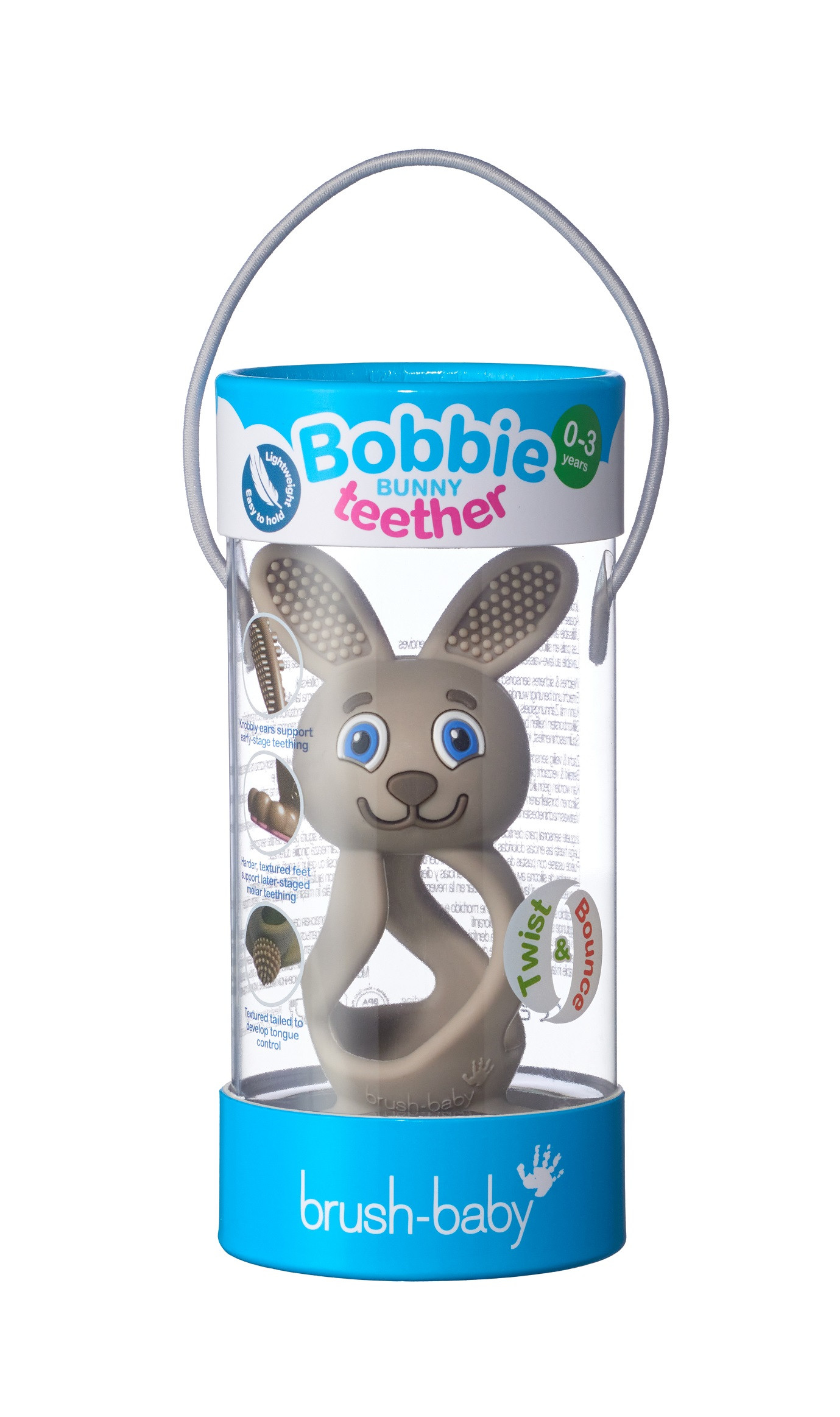 Pružné bříško Bobbie Bunny promění prořezávání zoubků v hravé dobrodružství. Dítě si s kousátkem může hrát a všelijak s ním kroutit. Tato jedinečná funkce kousátka Bobbie Bunny zapojuje smysly vašeho dítěte a podněcuje motorický vývoj, takže při prořezávání zoubků může být i zábava.