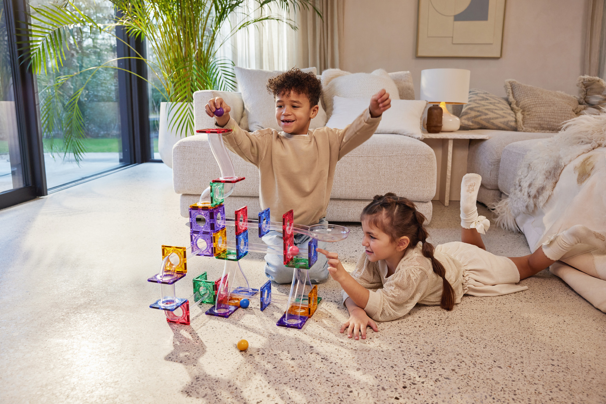 Kouzlo magnetů přirozeně přitahuje dětskou pozornost a podporuje chuť objevovat. Děti si samy zkouší, co všechno lze postavit, a přirozeně tak rozvíjejí fantazii, kreativitu i logické myšlení. Kuličková dráha navíc přináší do hry dynamiku, děti sledují pohyb kuliček, testují své stavby a učí se principům pohybu a gravitace.