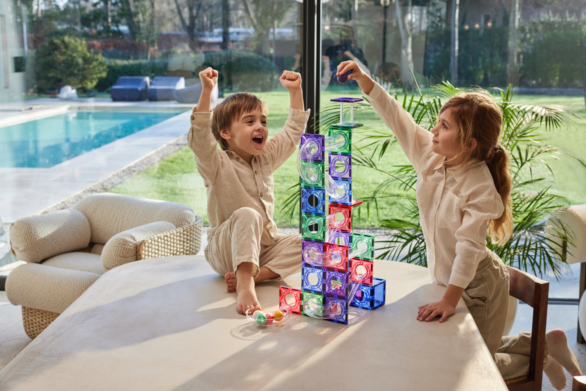 Kuličková dráha přináší do hry pohyb a dynamiku, děti sledují, jak se kuličky pohybují, testují stabilitu svých staveb a přirozeně objevují principy fyziky, jako je gravitace nebo rychlost. Každá stavba je jiná, což zajišťuje, že hra jen tak neomrzí.