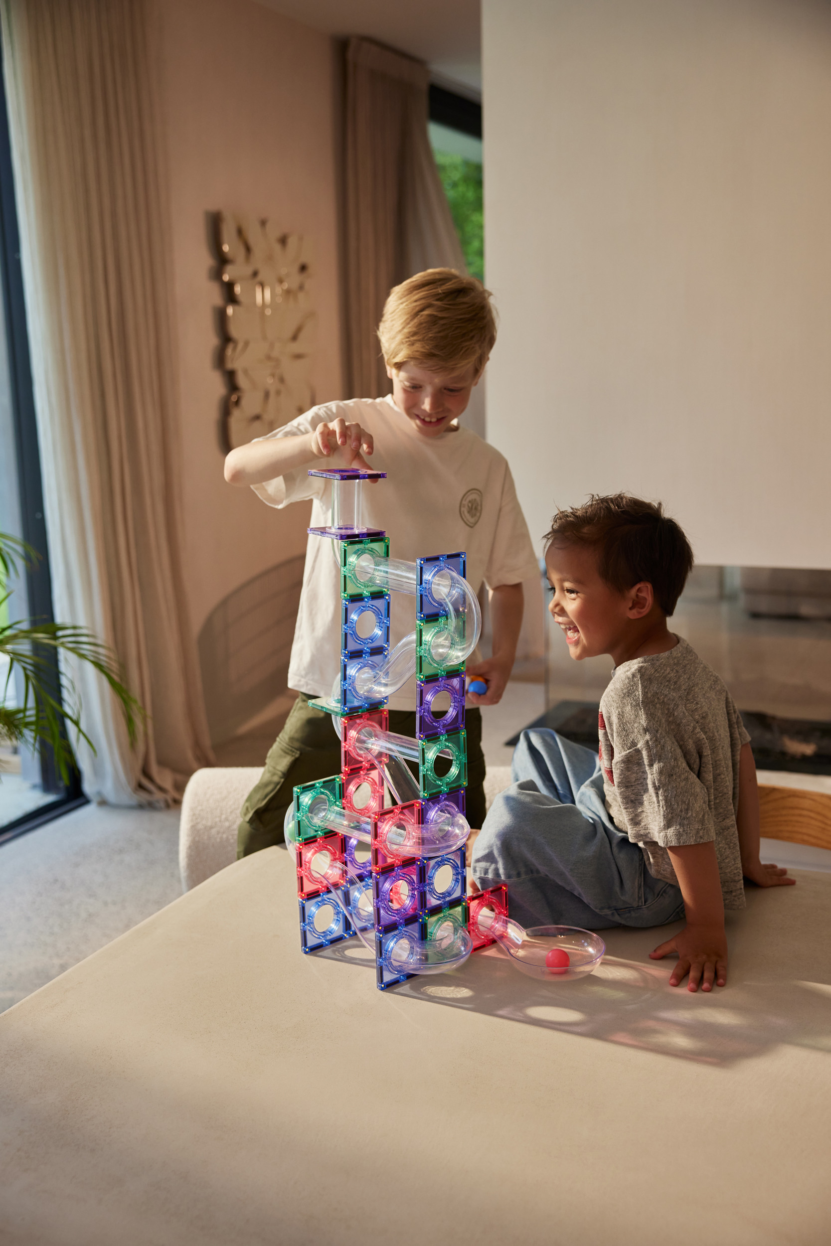 Díky silným magnetům do sebe jednotlivé dílky snadno zapadají, takže děti mohou bez frustrace tvořit vlastní konstrukce – od jednoduchých drah až po složitější 3D stavby. Magnety mají pro děti přirozenou přitažlivost a podporují jejich chuť objevovat a zkoušet nové možnosti.