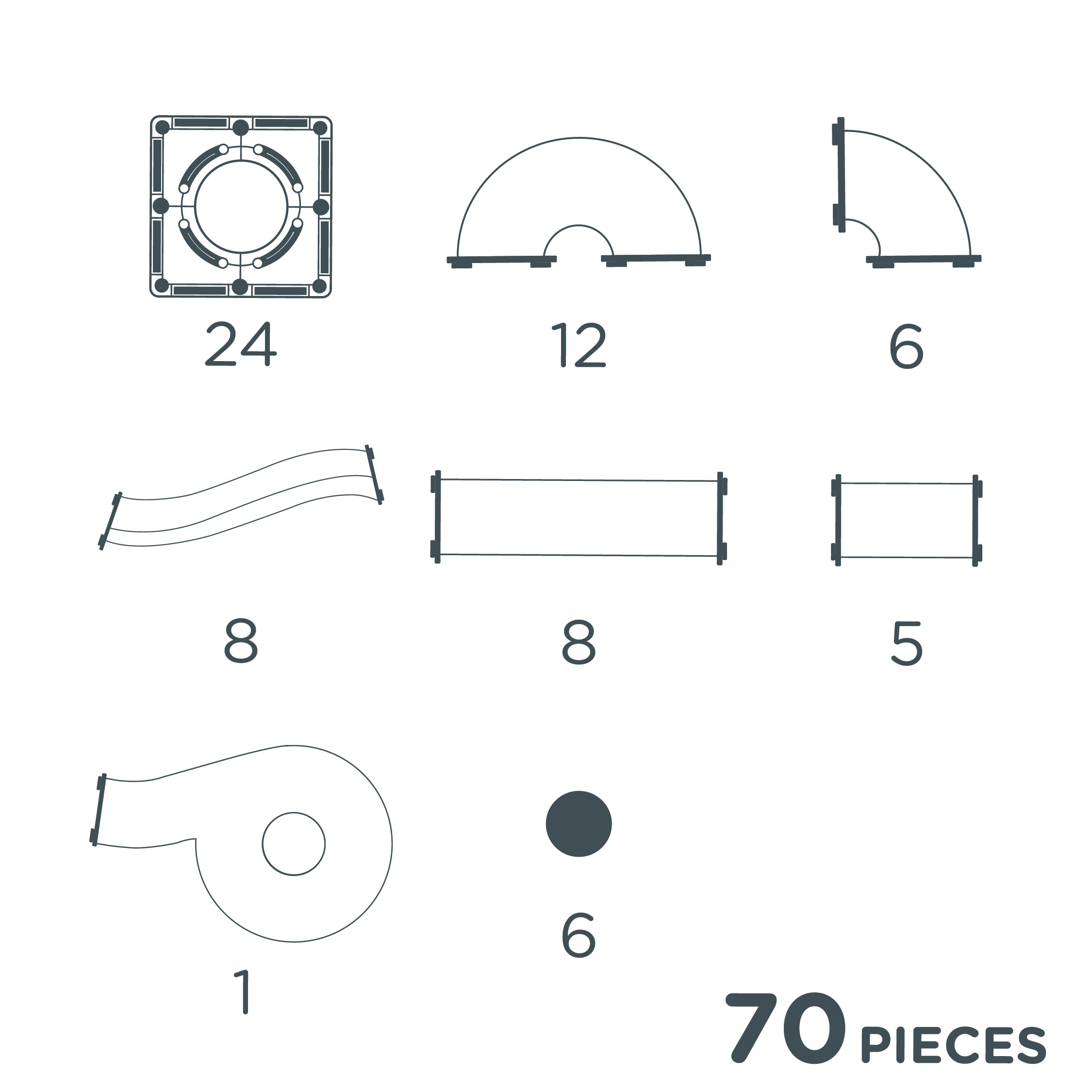 Dílky jsou vyrobeny z kvalitního a odolného plastu (ABS/MABS), který je zdravotně nezávadný – neobsahuje BPA ani ftaláty a splňuje přísné bezpečnostní normy (CE, EN71, ASTM). Díky tomu je stavebnice bezpečná i pro menší děti a zároveň vydrží každodenní hraní.