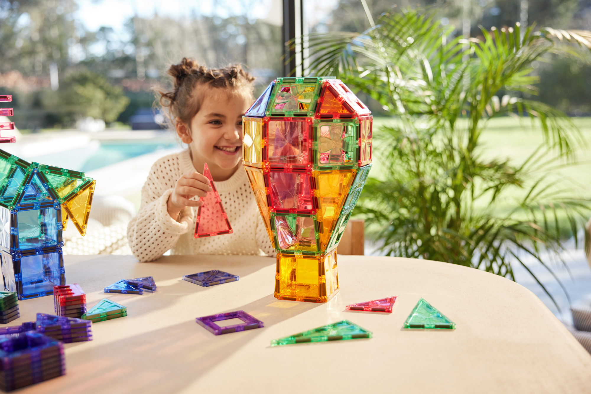 Díky velkému množství různých tvarů děti poznávají barvy, geometrické tvary i principy skládání v prostoru. Silné magnety zajišťují, že jednotlivé dílky pevně drží pohromadě, takže se děti mohou pustit i do vyšších a složitějších projektů. Hra se stavebnicí zároveň podporuje rozvoj tzv. STEAM dovedností (věda, technika, inženýrství, umění a matematika), jemnou motoriku i schopnost řešit problémy – a to vše přirozeně, formou hry.