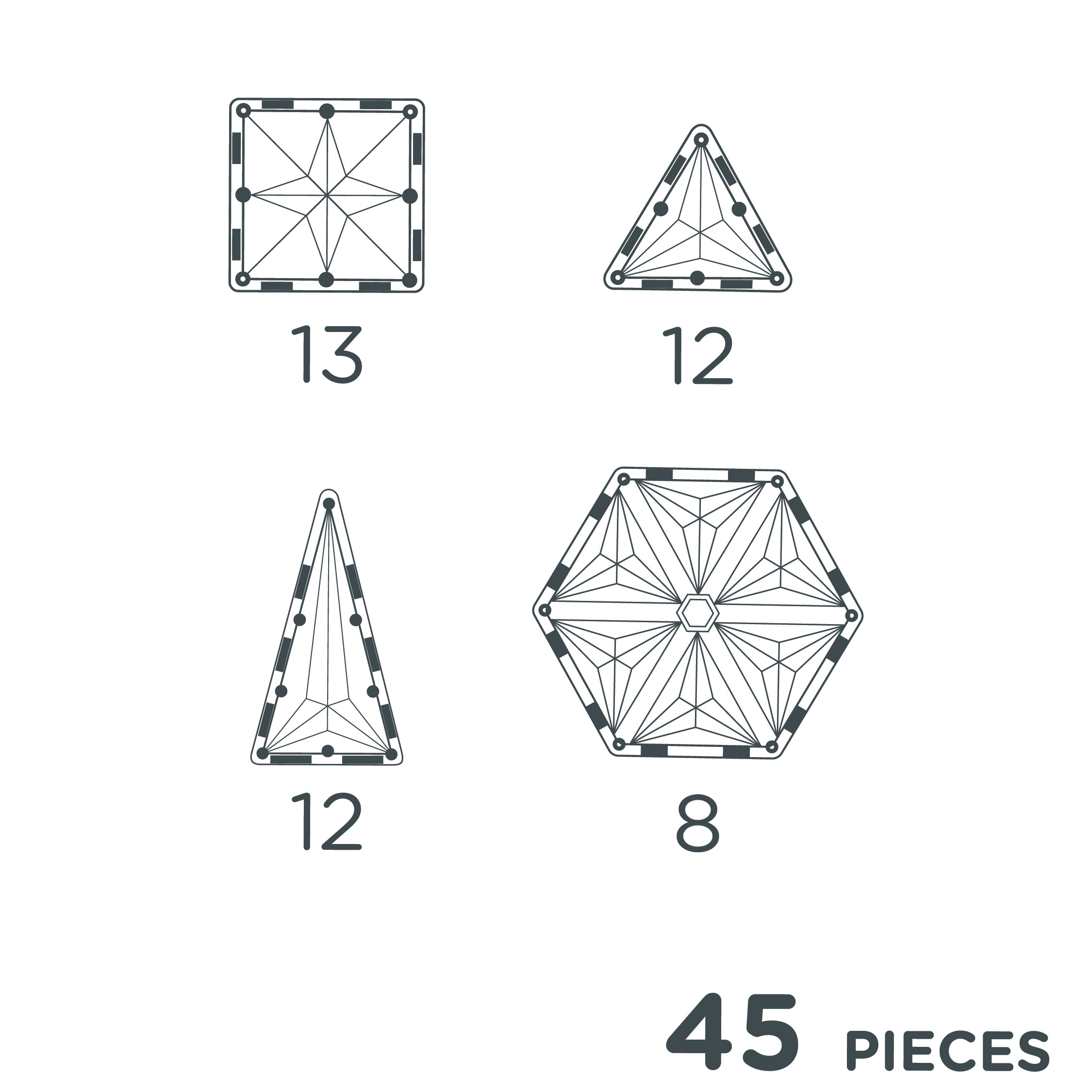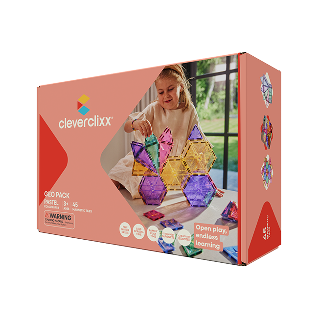Magnetická stavebnice Cleverclixx Geo Pack v jemných pastelových barvách obsahuje 45 dílků a je ideální pro objevování světa tvarů a geometrie hravou formou. Díky pestré kombinaci různých geometrických prvků si děti přirozeně osvojují, jak jednotlivé tvary fungují a jak je lze kombinovat ve 3D prostoru. V balení najdete kombinaci různých geometrických tvarů – čtverce, několik typů trojúhelníků i šestiúhelníky. Právě tato pestrost umožňuje dětem lépe pochopit rozdíly mezi tvary a jejich využití při stavění.