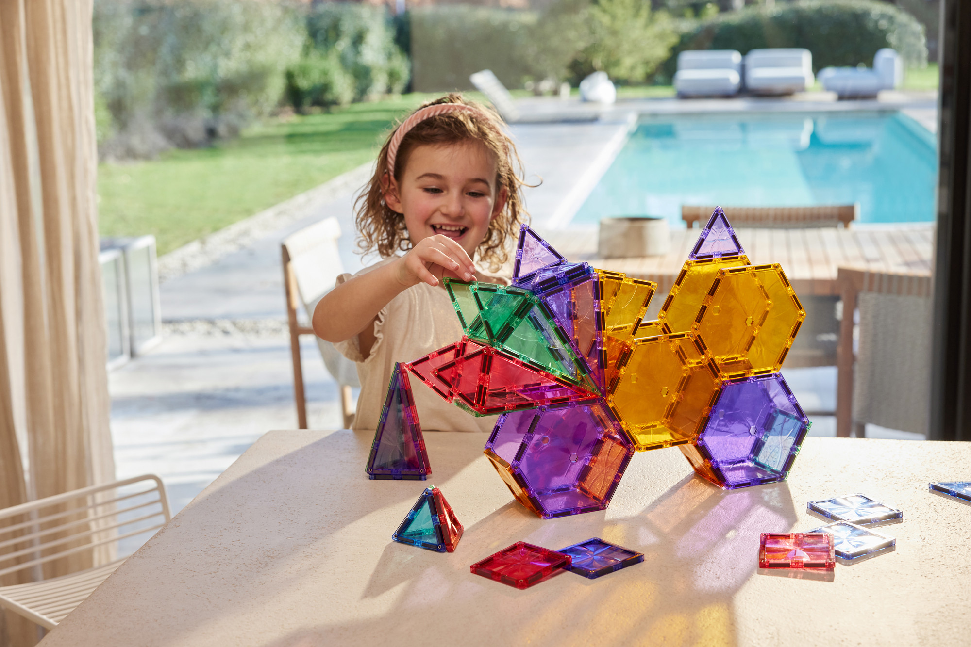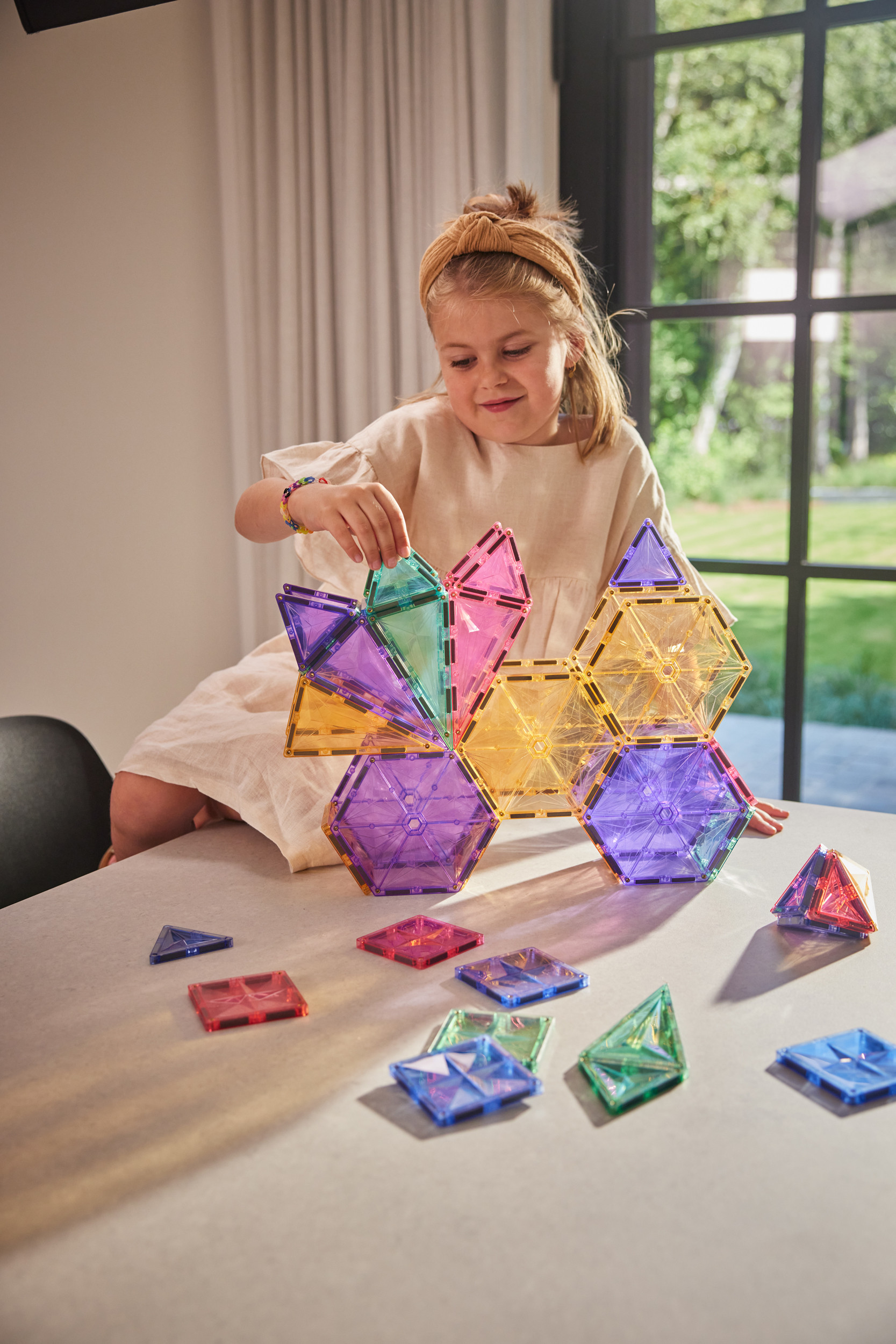 Díky silným magnetům do sebe dílky snadno zapadají, takže děti mohou bez frustrace stavět jednoduché i složitější konstrukce. Postupně tak přechází od základních tvarů k propracovanějším stavbám a přirozeně rozvíjejí prostorovou představivost i logické myšlení.