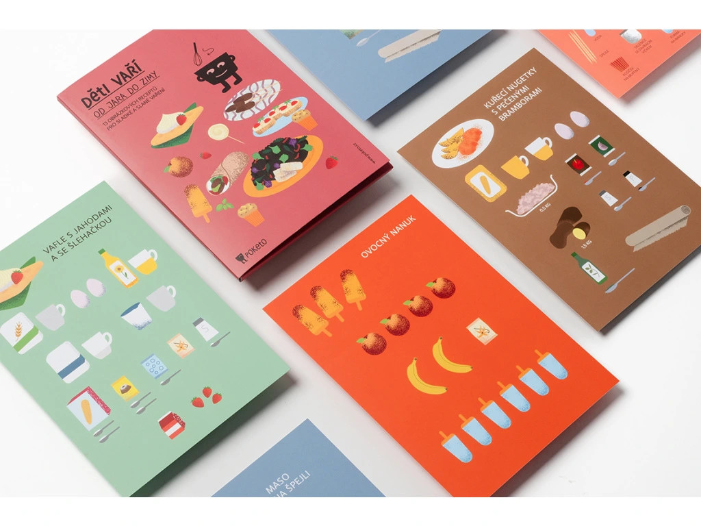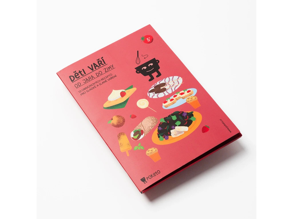 Kuchařka Děti vaří od jara do zimy přináší celkem 13 obrázkových receptů se sezónními surovinami, které obvykle zvládnou samy děti. Pro každé roční období tu najdete alespoň jedno slané jídlo, jedno sladké jídlo a malou svačinku. Každý recept je na samostatné kartě a je postavený primárně na obrázcích. Textu je minimum. Množství surovin je uvedeno hrníčkovou metodou. Vhodné pro děti od pěti let.