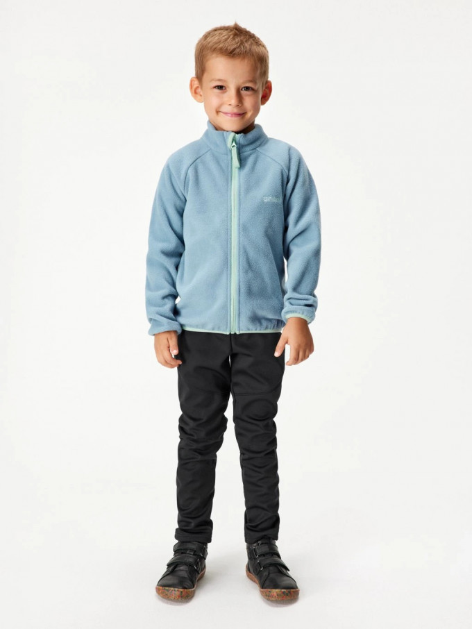 Použitý fleece je lehký, hebký na dotek a zároveň dostatečně prodyšný, takže pomáhá udržet tepelný komfort bez zbytečného přehřívání při pohybu. Materiál navíc mírně pruží, což dětem dopřává volnost při hraní, běhání i oblékání.
