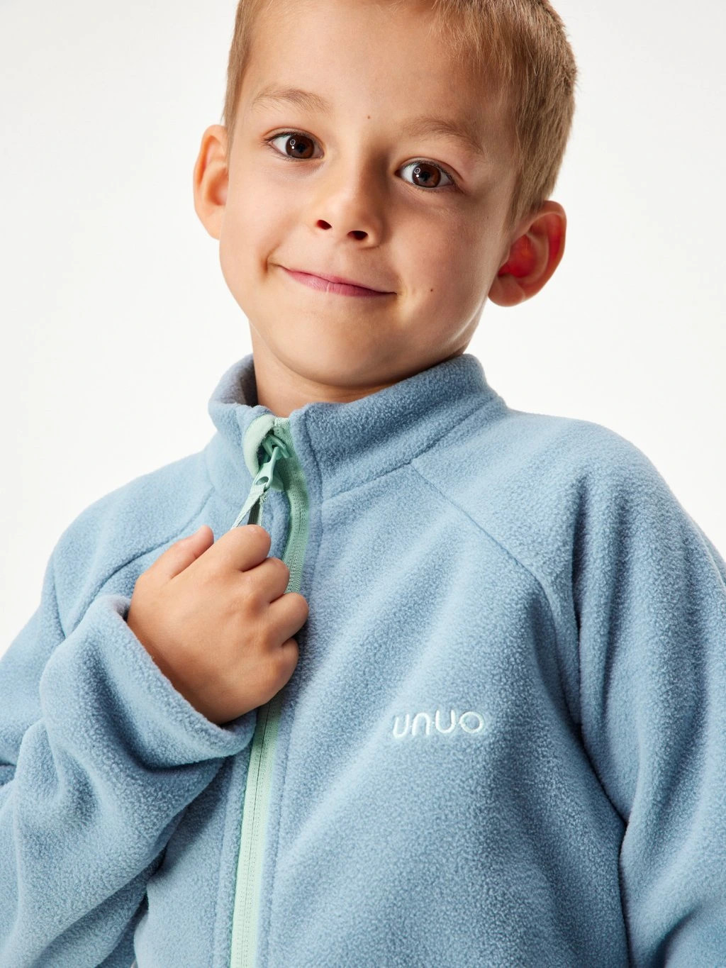 Světle modrá fleecová mikina UNUO je praktický kousek do dětského šatníku, který využijete během většiny roku. Skvěle poslouží jako samostatná vrstva v mírnějším počasí i jako hřejivá mezivrstva pod bundu, když se ochladí.