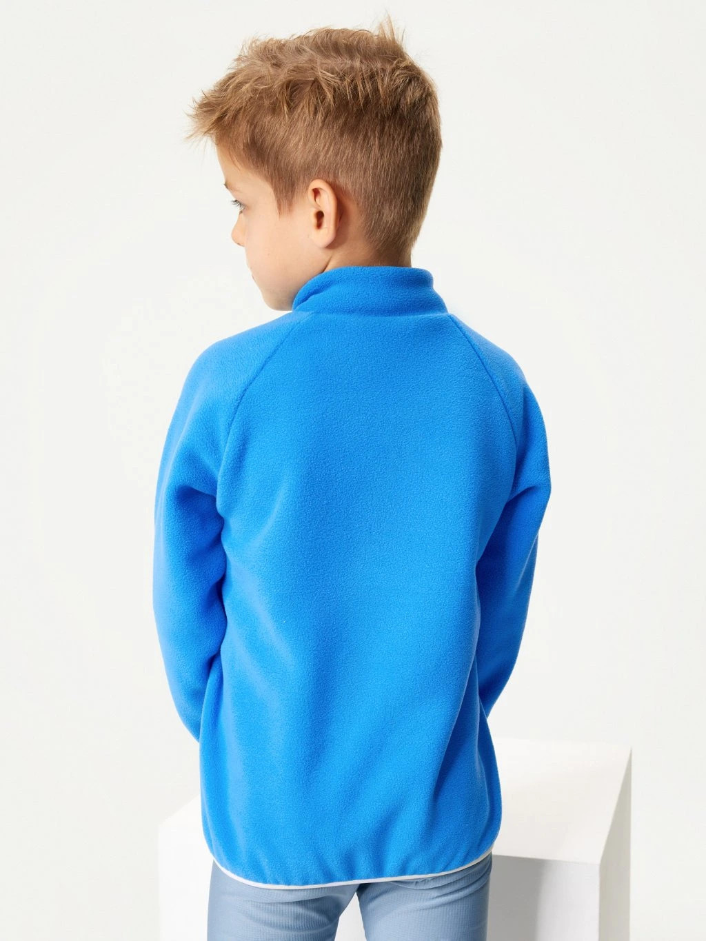 Lehký fleece příjemně zahřeje, ale díky své prodyšnosti pomáhá udržet stabilní tepelný komfort i při aktivním pohybu. Materiál je měkký, jemný na dotek a lehce pružný, takže děti nijak neomezuje při běhání ani hraní.