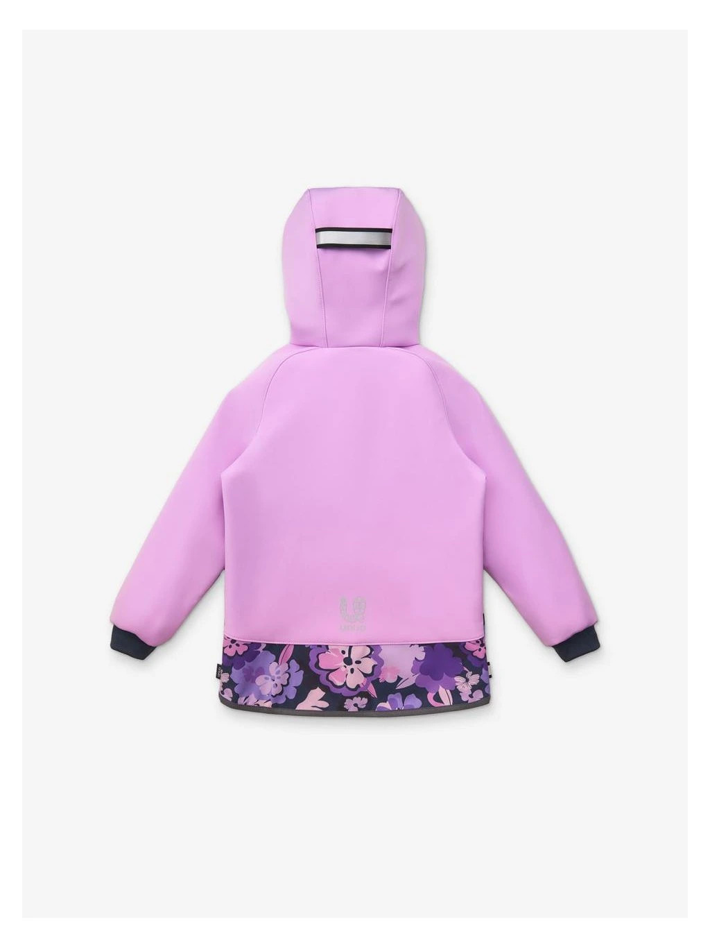 Kapuce chrání hlavu před nepříznivým počasím a elastické zakončení rukávů i spodního lemu pomáhají udržet bundu na správném místě. Praktický zip je doplněn krytkou brady pro pohodlné zapínání. Reflexní detaily přispívají k lepší viditelnosti dítěte za šera. Něžná lila varianta s kytičkami se dá navíc sladit s dalšími funkčními kousky ze stejné kolekce.