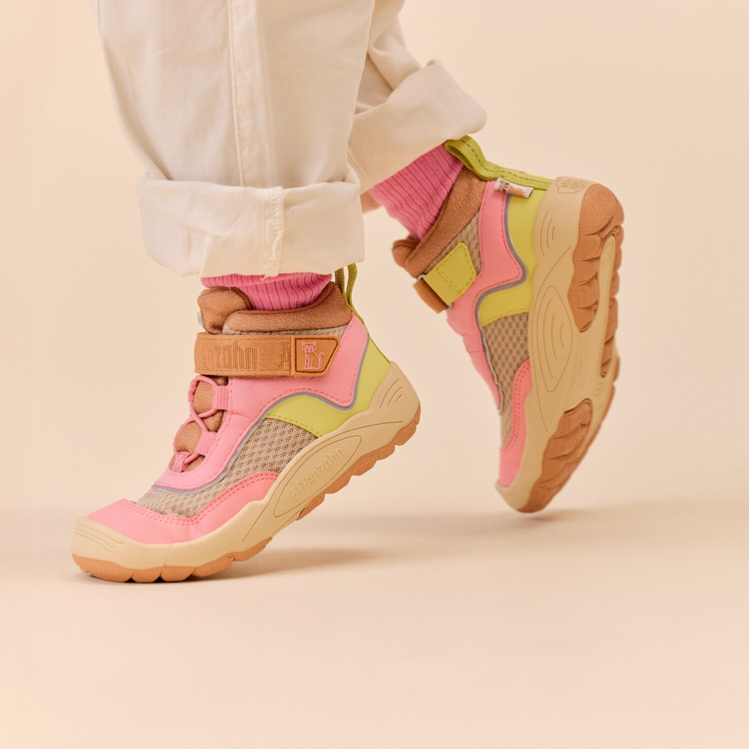 Zapínání na suchý zip a elastické tkaničky usnadňuje obouvání – děti to zvládnou úplně samy. Super lehká konstrukce zajišťuje pohodlí po celý den a tenká, flexibilní podrážka dovoluje noze cítit terén, posilovat svaly a rozvíjet přirozenou rovnováhu. Barefoot tvar bot poskytuje dostatek prostoru pro každý prst a podporuje zdravý vývoj dětských chodidel. Na patě nechybí hravý puzzle obrázek, který pomáhá snadno rozlišit pravou a levou botu – praktický detail, který děti ocení při každodenním obouvání.