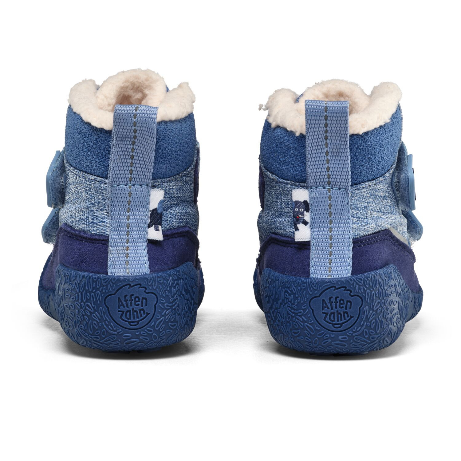 Affenzahn Prewalker Midboot Vegan Snuggy jsou lehké a flexibilní barefoot boty pro dítě, které se učí chodit. Jsou nepromokavé a mají hřejivou podšívku, která batolata udrží v teple při jejich prvních zimních dobrodružstvích. Nově vyvinutá podrážka poskytuje přilnavost a stylový design skvěle vypadá. Jsou voděodolné, reflexní a protiskluzové.