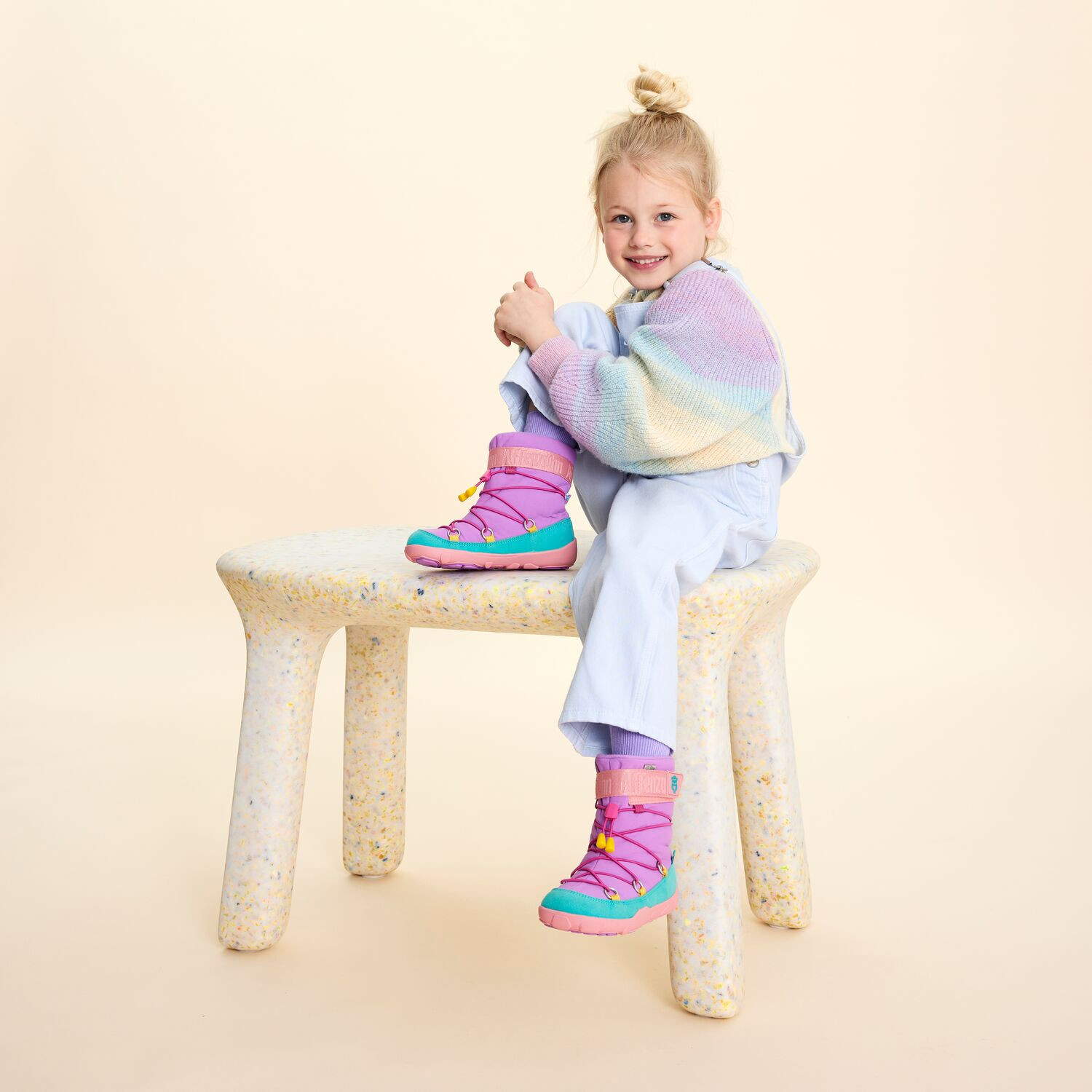 Dětské zimní boty Snowboot Vegan Snowy Owl jsou perfektní parťák na všechny zimní radovánky. Díky ergonomickému tvaru a dostatečnému prostoru pro prsty děti běhají, skáčou i brodí se ve sněhu naprosto přirozeně. Tenká a ohebná podrážka s protiskluzovým vzorkem zajišťuje stabilní krok, takže dobrodružství ve sněhu je bezpečné a pohodlné.