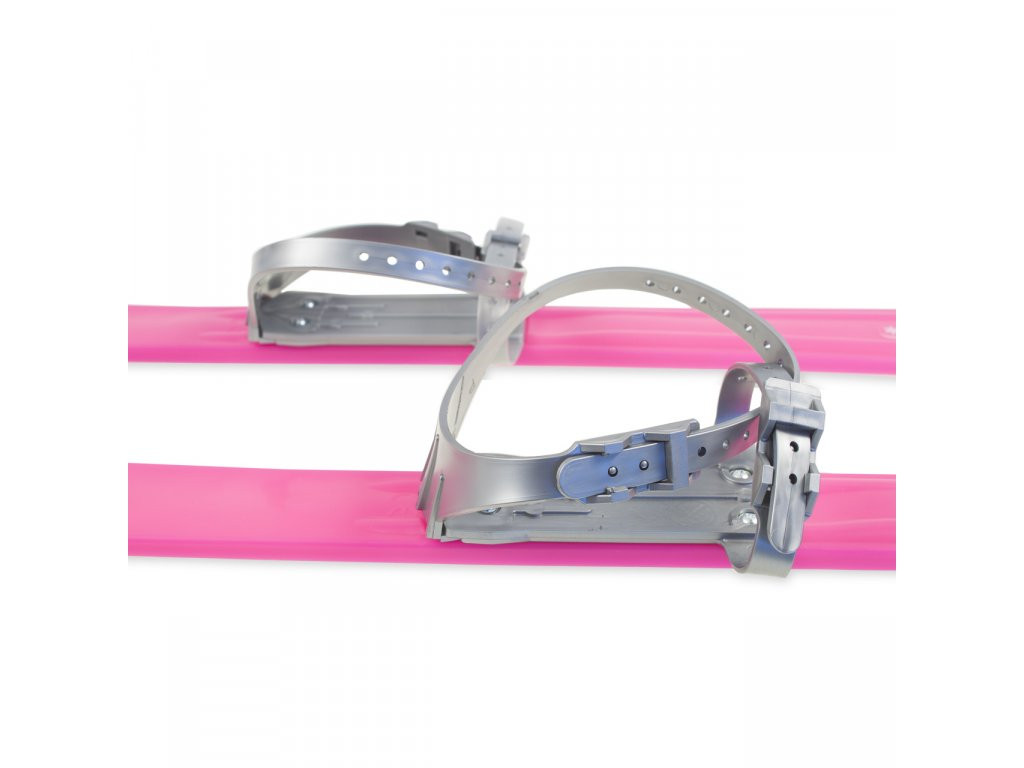 Lyže pro nejmenší začátečníky. Set: lyže + vázání + hůlky. Měkké plastové vázaní se přizpůsobí velikosti všech dětských bot. Lyže umožňují dělat drobné krůčky, takže se dítě naučí držet rovnováhu a základní pohyby na lyžích. Určeno pro děti cca od 3 do 6 let.