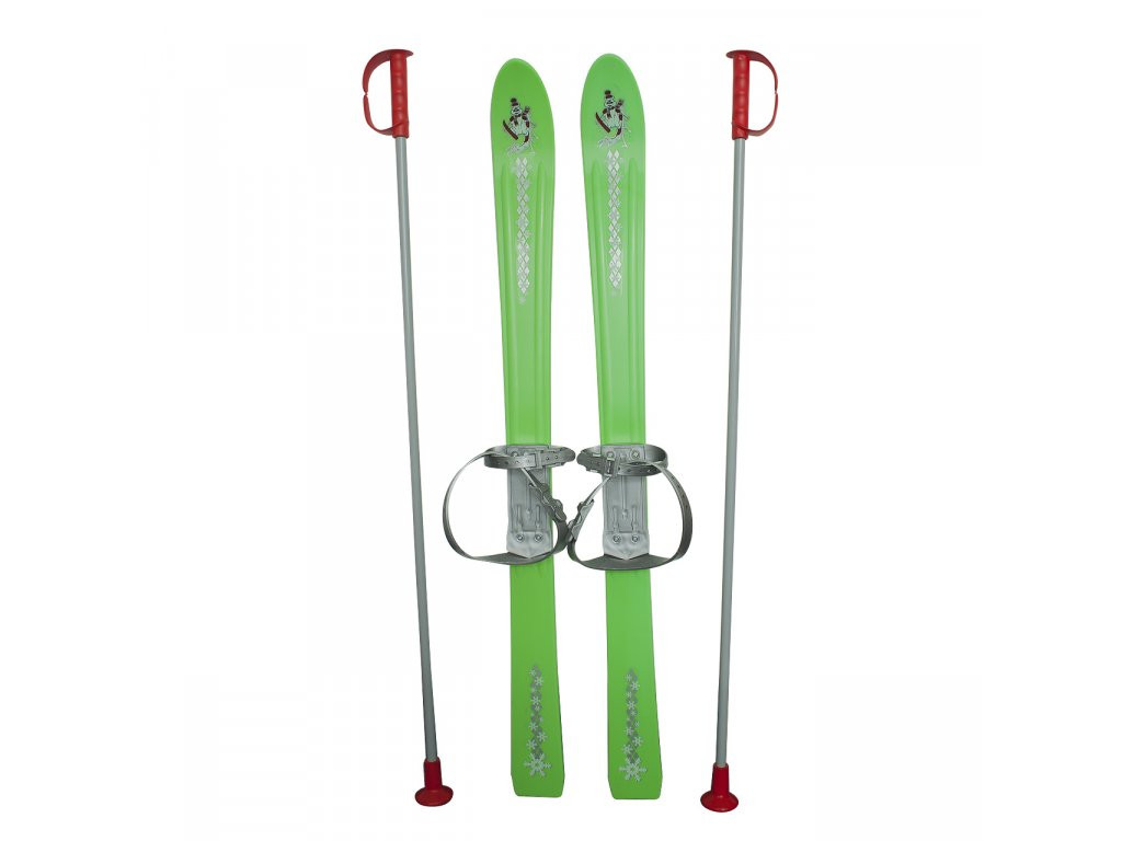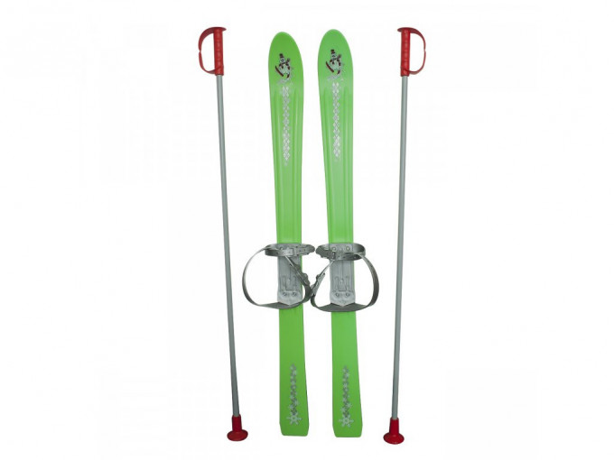 Lyže pro nejmenší začátečníky. Set: lyže + vázání + hůlky. Měkké plastové vázaní se přizpůsobí velikosti všech dětských bot. Lyže umožňují dělat drobné krůčky, takže se dítě naučí držet rovnováhu a základní pohyby na lyžích. Určeno pro děti cca od 3 do 6 let.