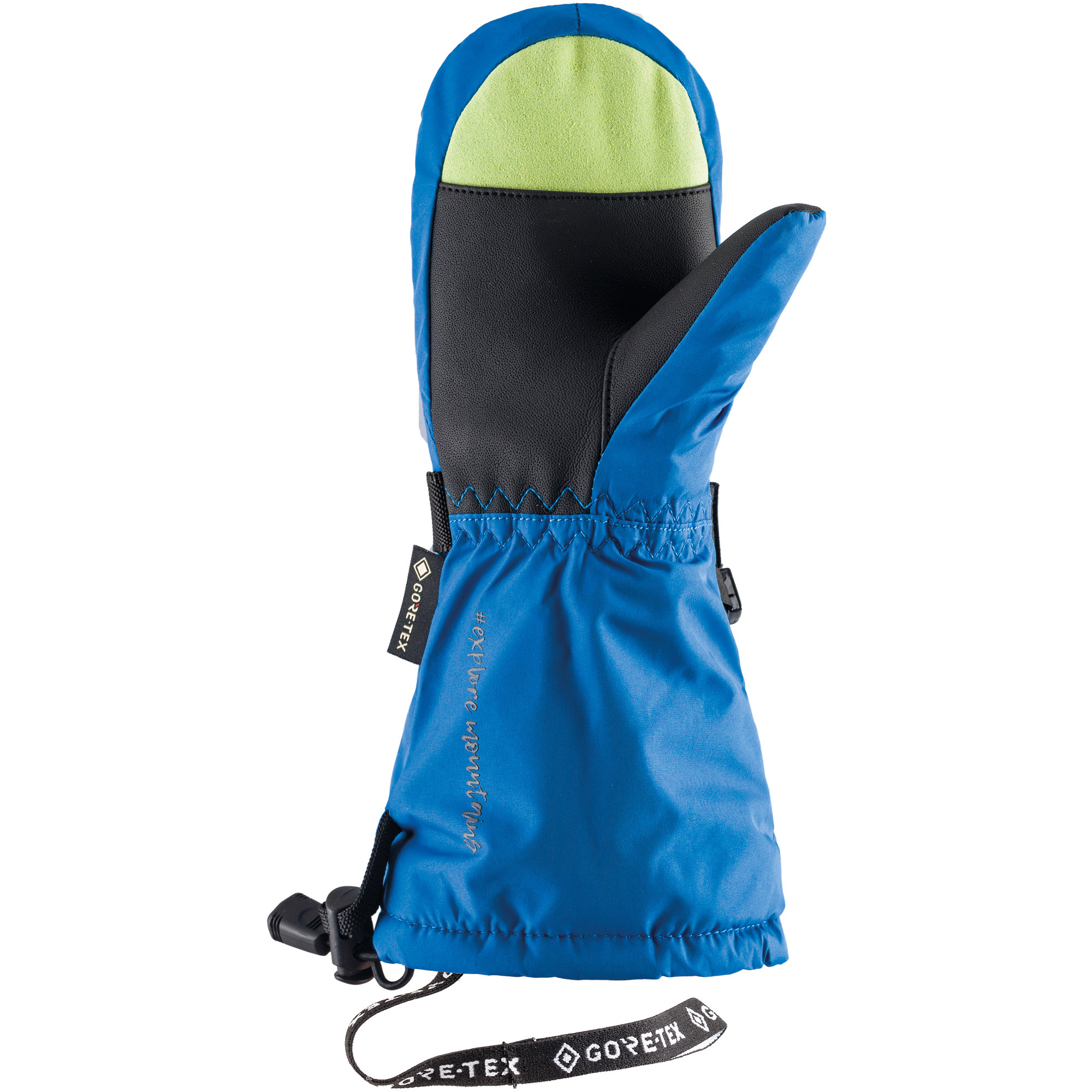 Dětské palčáky Nomadic GTX® ve stylové modré barvě jsou skvělou volbou do náročných zimních podmínek. Díky membráně Gore-Tex® Warm jsou naprosto voděodolné a zároveň zůstávají prodyšné – vlhkost z rukou se tak může volně odpařovat, což zajišťuje celodenní sucho a komfort.