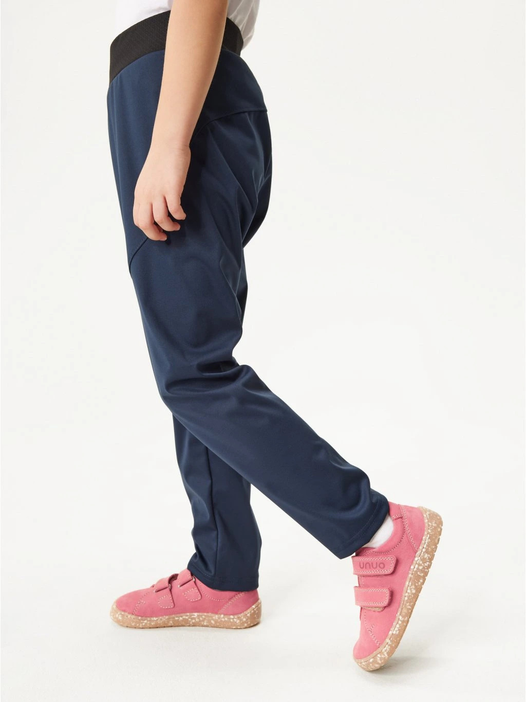 Pružný softshell odpuzuje vlhkost a chrání před větrem, přitom zůstává dostatečně prodyšný pro aktivní děti. Díky absenci zateplení jsou kalhoty ideální pro přechodné období a snadno se kombinují s další vrstvou podle aktuální teploty. Elastický náplet v pase zajišťuje pohodlné nošení bez škrcení a usnadňuje oblékání.