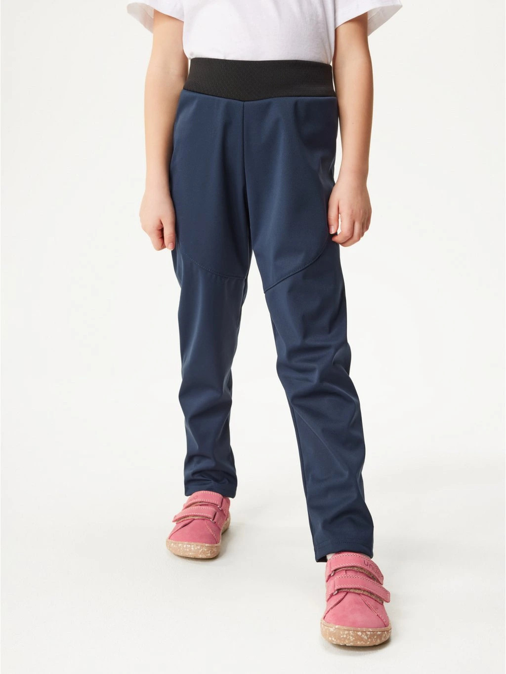 Pružný softshell odpuzuje vlhkost a chrání před větrem, přitom zůstává dostatečně prodyšný pro aktivní děti. Díky absenci zateplení jsou kalhoty ideální pro přechodné období a snadno se kombinují s další vrstvou podle aktuální teploty. Elastický náplet v pase zajišťuje pohodlné nošení bez škrcení a usnadňuje oblékání.