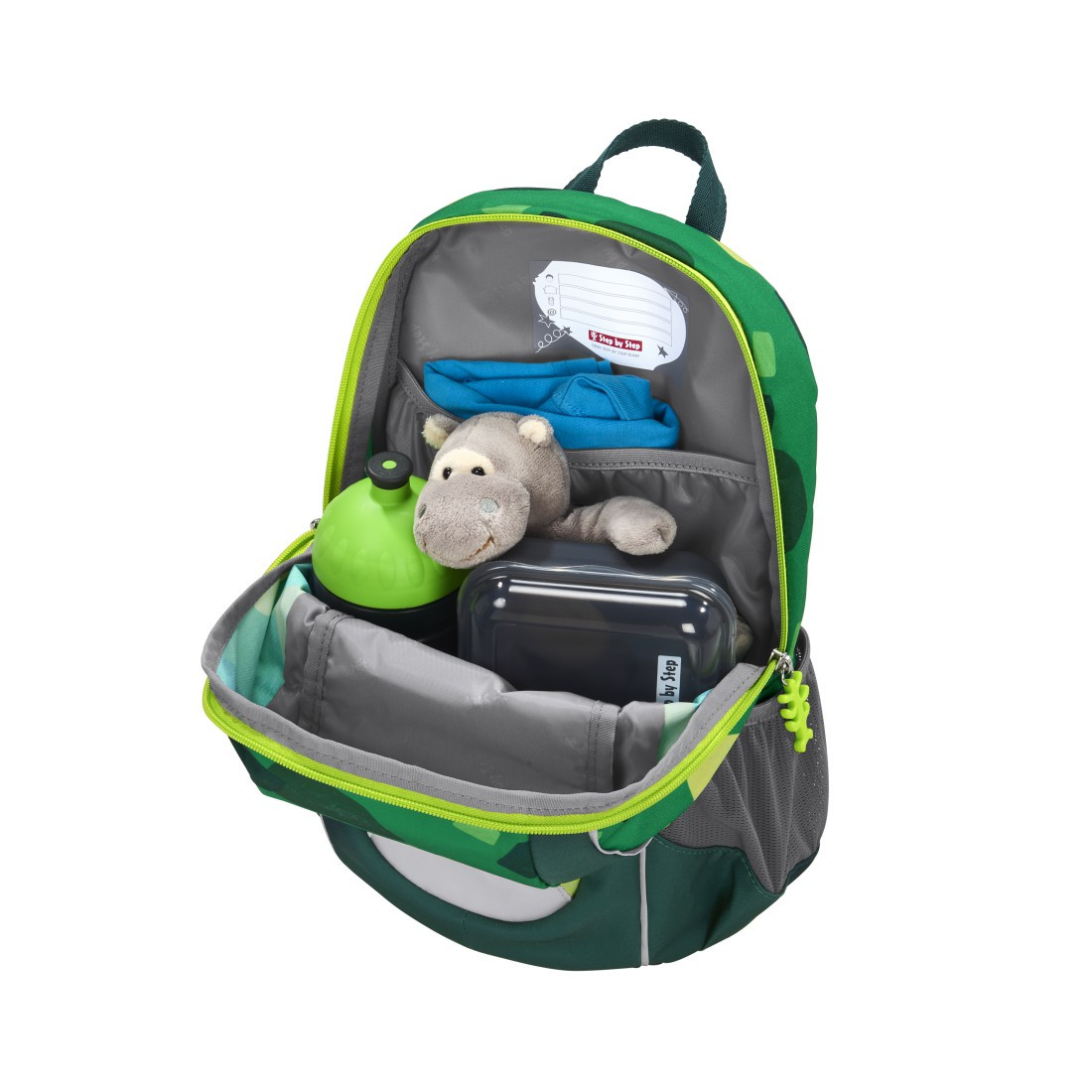 Velký dětský batůžek vhodný i pro ty nejmenší děti do školky nebo na výlety. Batoh nabízí dostatek prostoru pro hračky, láhev na pití nebo dokonce oblíbeného plyšového kamaráda. 2dílný set obsahuje batůžek a vyměnitelný obrázek KIGA MAGS.