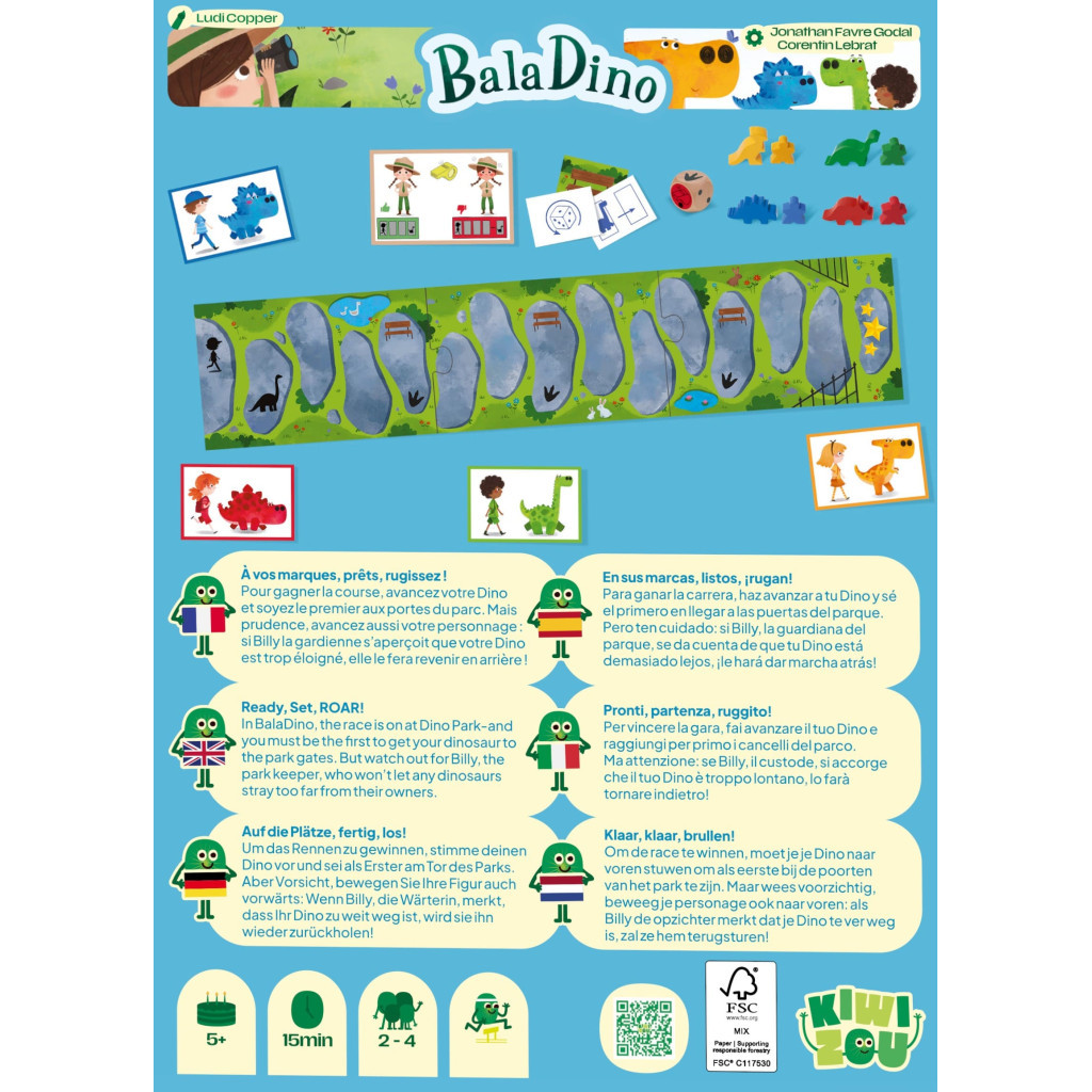 BalaDino je zábavná a rychlá hra, ve které závodí dinosauři. Úkolem hráčů je dostat svého dinosaura co nejrychleji k bráně parku. Vyhrává ten, kdo tam dorazí jako první. Hra je jednoduchá, a proto je ideální pro předškoláky a začínající hráče. Díky barevným ilustracím a krátké herní době si hru děti oblíbí.