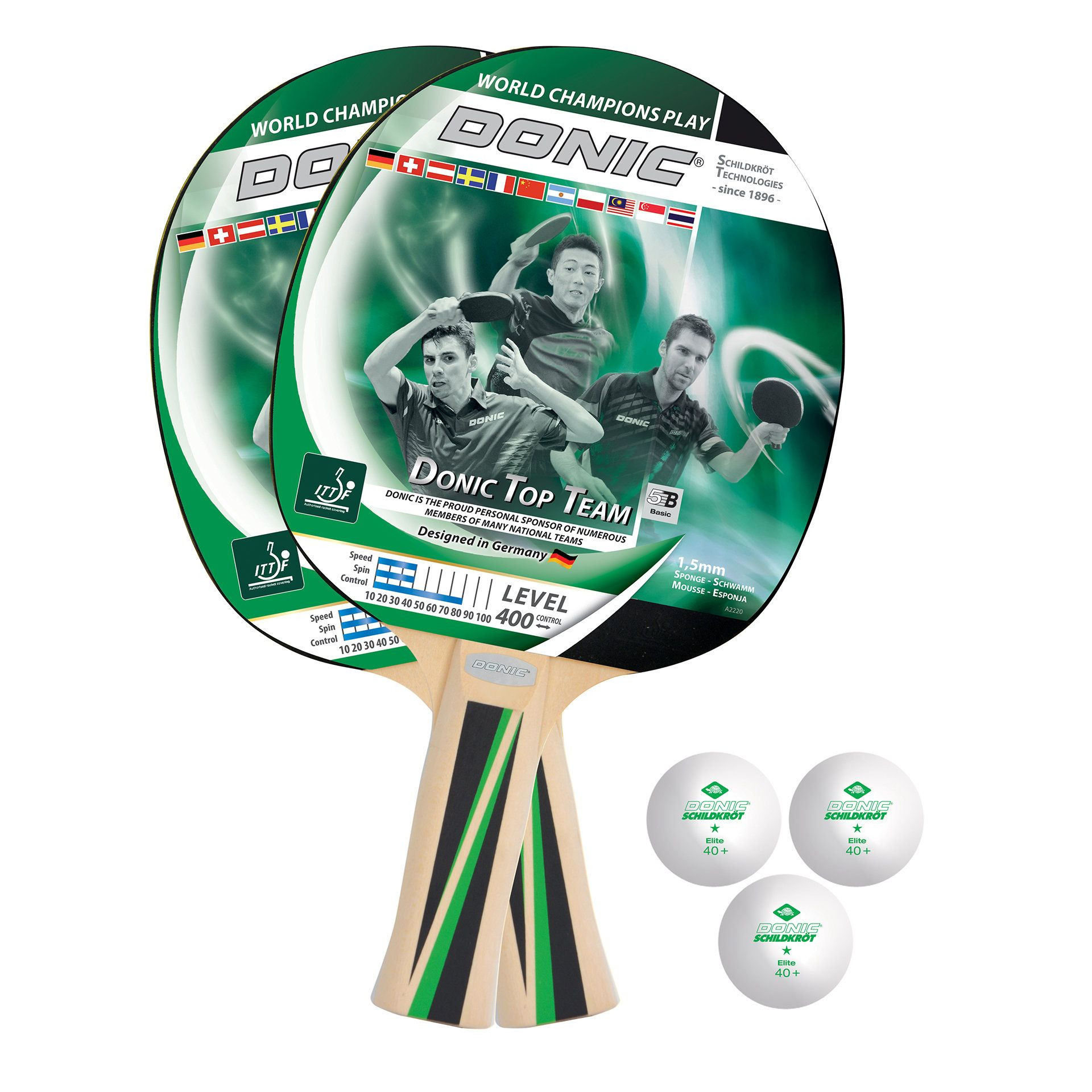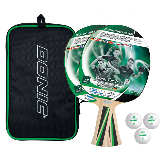 Skvělá sada na stolní tenis obsahuje 2 pálky Top Team 400 a 3 míčky (průměr 40 mm). Sada je ideální pro hráče s dobrou základní technikou a kontrolou míčku. Je vhodná pro rekreační hru i školní kluby. Vše je uloženo v praktickém obalu na zip.
