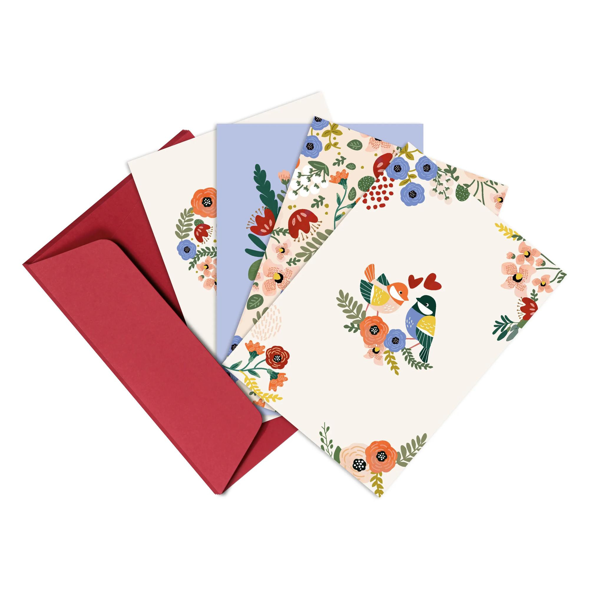 Korespondenční sada s jednotným motivem obsahuje osm stylových přání (11 × 15,5 cm) a osm obálek formátu C6 (114 × 162 mm). Ať už posíláte přání k narozeninám, děkujete, nebo se jen chcete ozvat svým blízkým, tato korespondenční sada vám pomůže vyjádřit vše, co máte na srdci.