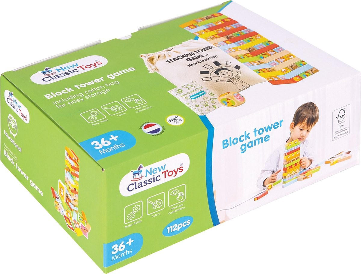 Perfektní napínavá hra pro celou rodinu. Hráči hází kostkou a postupně vytahují z věže hrací bloky s tím obrázkem, který jim padne na hrací kostce. Kámen, který vytáhnou, položí navrch věže tak, aby věž nespadla. Další variantou hry je verze, kdy hráči vytahují z věže hrací kameny podle obrázků na kartách. Ty vytahují z hromádky, kterou umístí uprostřed stolu. Vyhrává hráč, který jako poslední položí blok na věž, aniž by spadla.