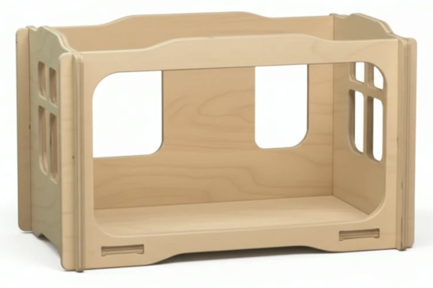 Vyrobeno je z kvalitní březové překližky, která je pevná, stabilní a bezpečná pro každodenní hraní. Modulární systém umožňuje jednotlivá patra stohovat, kombinovat i používat samostatně, třeba jako malý prostor pro figurky, garáž nebo součást větší stavebnice. Díky tomu domeček podporuje kreativitu, prostorové vnímání i schopnost organizace, protože děti si samy rozhodují, jak bude jejich herní svět vypadat. Hra tak roste spolu s dítětem a nikdy neomrzí.