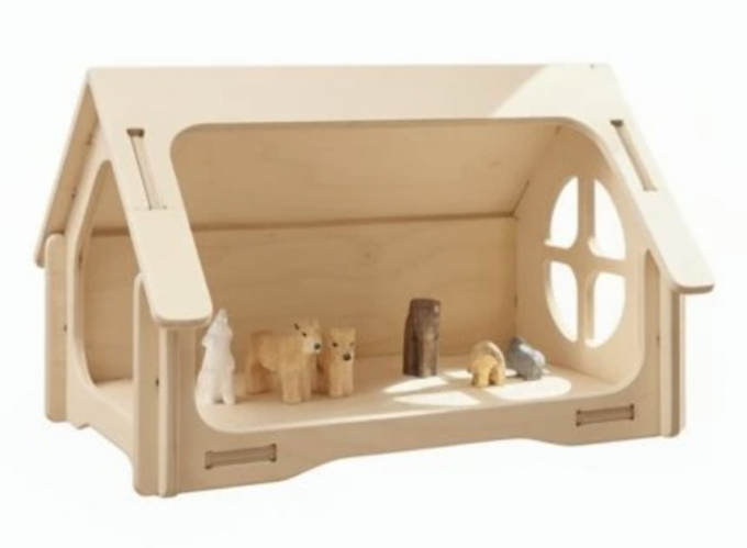 Domeček se střechou může sloužit nejen jako klasické obydlí pro panenky, ale i jako otevřená stavebnice. Děti ho mohou využít v rozložené podobě pro více herních scén najednou nebo ho zapojit do větších herních sestav. Díky své variabilitě roste spolu s dítětem a přizpůsobí se jeho aktuálnímu stylu hry.