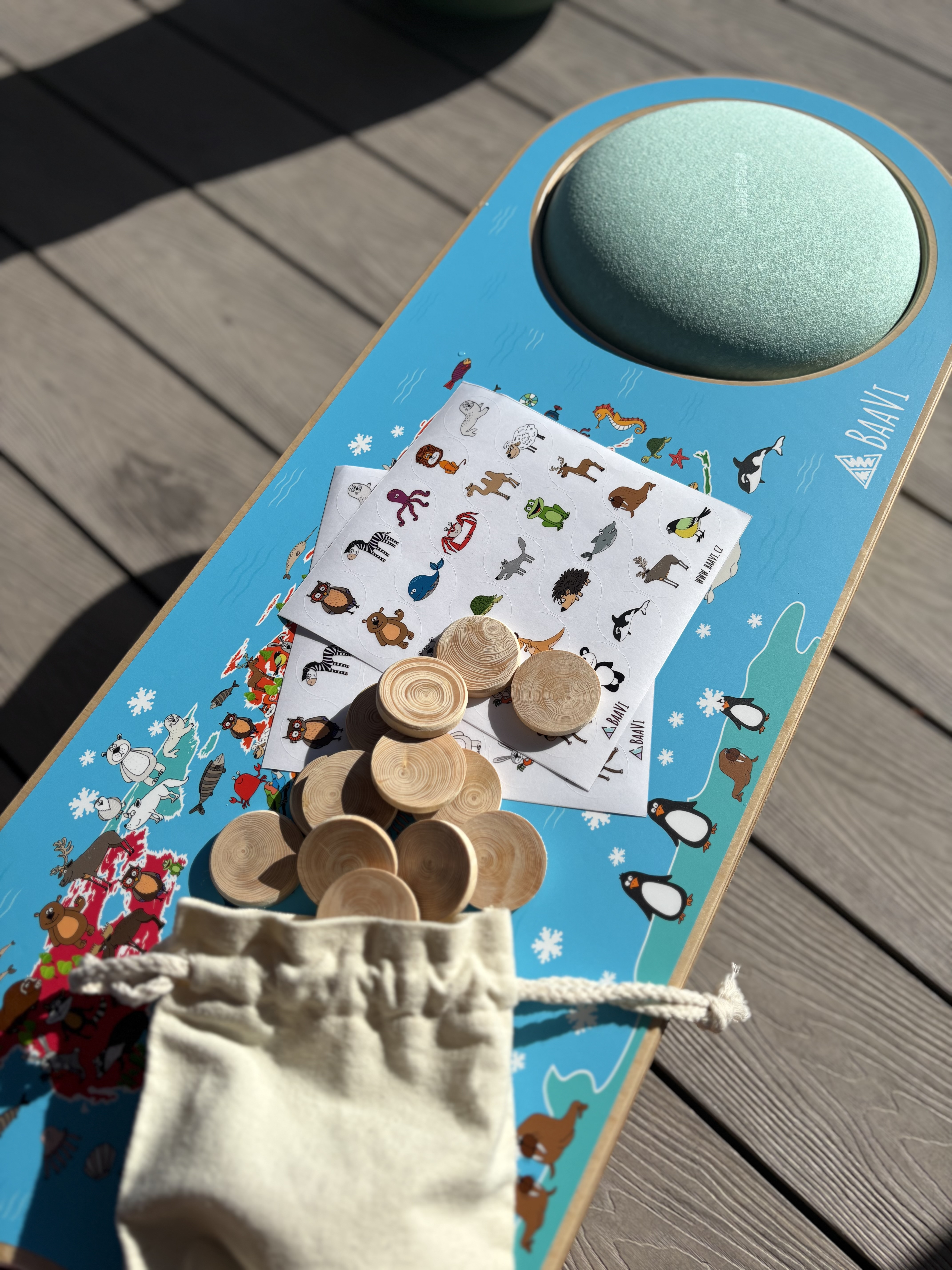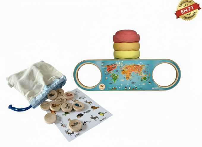 Dřevěný mostek s polepem kontinentů a hrou se zvířátky je jedinečná hračka, která propojuje pohyb, učení i zábavu v jednom. Děti se při hraní přirozeně seznamují se světem – poznávají jednotlivé kontinenty, objevují zvířata, která na nich žijí, a zároveň si rozvíjejí fantazii i logické myšlení. Součástí setu jsou dřevěná kolečka a samolepky se zvířátky, s nimiž si děti mohou zahrát pexeso, hledat správné dvojice nebo přiřazovat zvířata ke kontinentům.