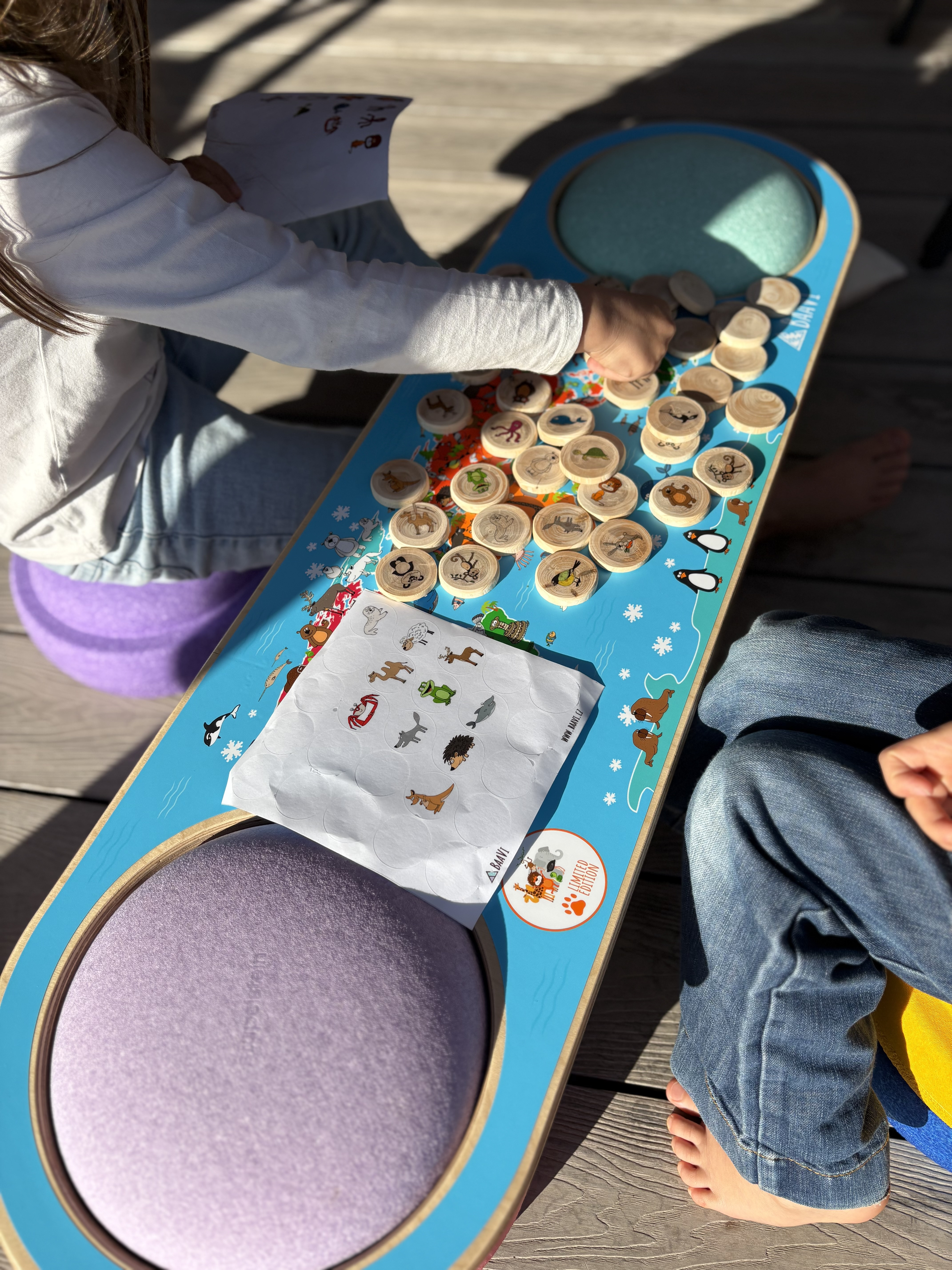 Mostek ale není jen o poznávání – je to zároveň skvělá pohybová pomůcka. Děti na něm trénují rovnováhu, koordinaci i celkovou motoriku. Lze ho používat samostatně, nebo jednoduše nasadit na nášlapné kameny Stapelstein, čímž vznikne hravá balanční dráha plná výzev. Díky této variabilitě se snadno přizpůsobí různým aktivitám doma i ve školce a podporuje nejen fyzický rozvoj, ale i soustředění, paměť a spolupráci.