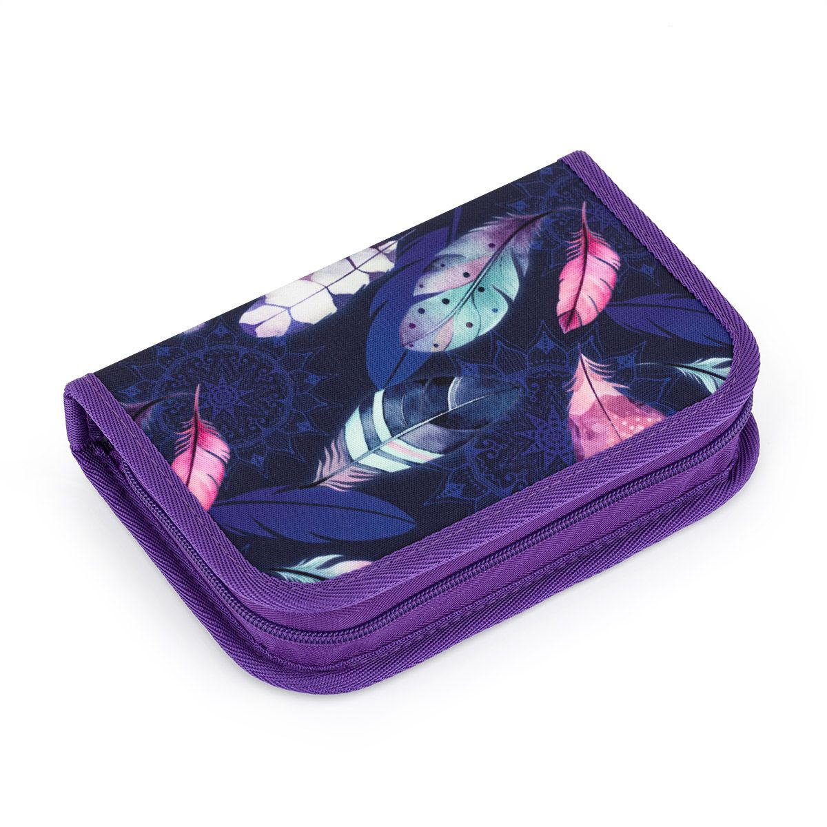 Jednopatrové školní pouzdro se dvěma klopnami je vybaveno 21 klasickými gumovými úchyty na pastelky a fixy, třemi širšími úchyty na pravítko, kružítko či nůžky a dvěma většími úchyty na gumu a ořezávátko. Pod klopou z průhledné folie najdete rozvrh hodin, druhé poslouží třeba i na taháky.