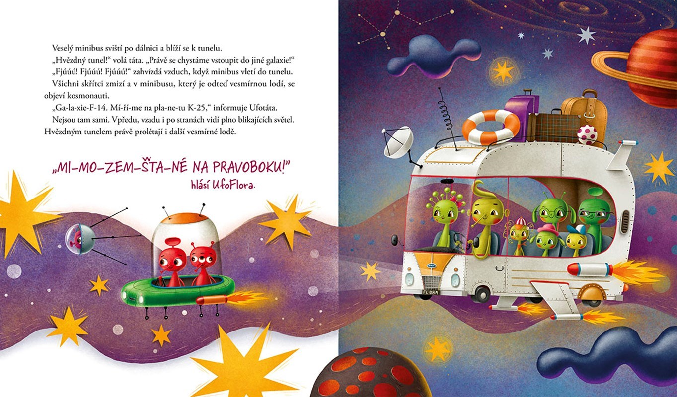 Holčička Flora se svou rodinou a nejlepší kamarádkou Leou vyráží na návštěvu k prarodičům na venkov. Protože je cesta dlouhá a nudná, střídají se rodiče ve vymýšlení kouzelných zemí, kterými projíždí. A tak se ocitnou v jurském parku plném dinosaurů i v zemi skřítků, pak se jejich auto promění v kosmickou loď a zamíří do jiné galaxie, ale nakonec přistane v údolí, kde žije troll. A dojde i na pozorování ptáků, návštěvu indiánů, setkání s ledními medvědy a mnoho dalších dobrodružství. Užijte si je taky! Čtení pro malé čtenáře od 6 let.