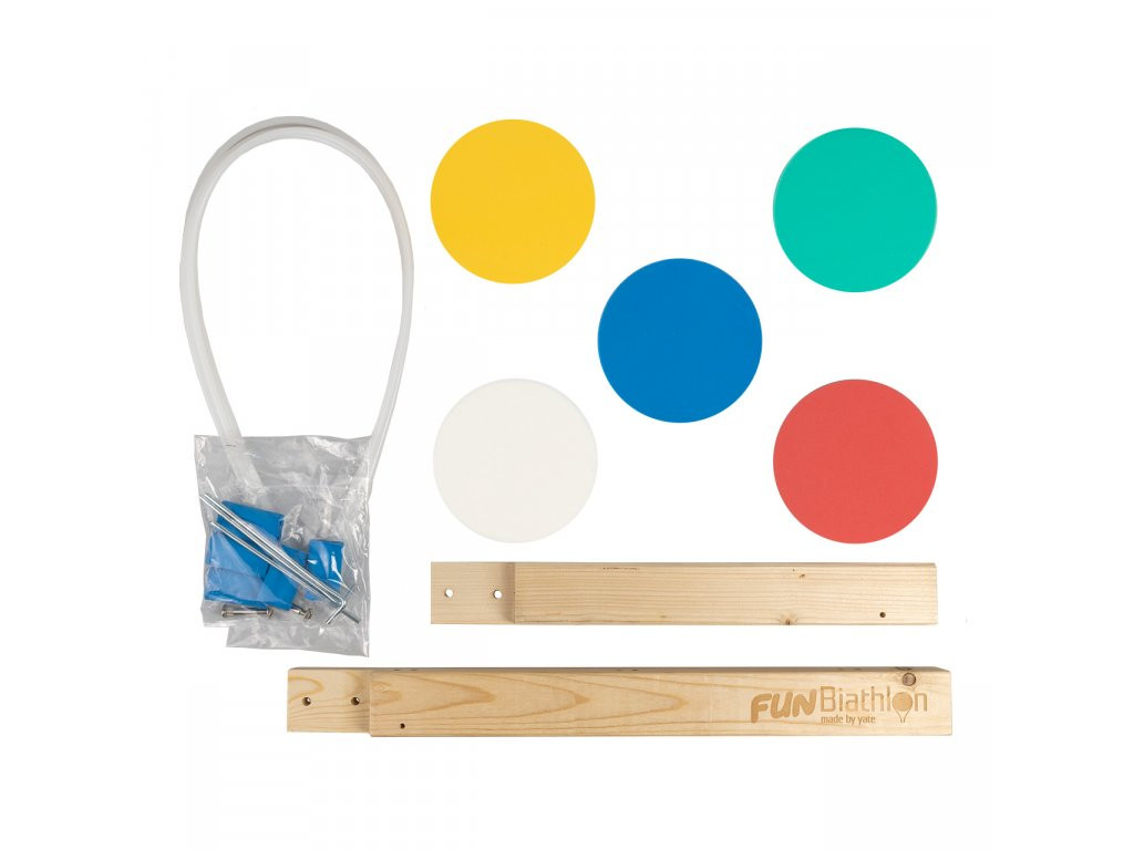 Zábavný biatlon pro děti i dospělé. Jednoduchý systém s pěnovými kotouči umožňuje střílení luky s malým nátahem, ale i prakem, pistolovou kuší apod. Vhodný na zahradu i do lukostřeleckého oddílu pro zpestření tréninku.