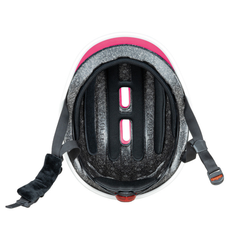 O vysoký komfort se starají sedmimilimetrové vnitřní podložky a měkký dvoumilimetrový chránič brady, který zabraňuje podráždění pokožky. Pro zvýšenou bezpečnost v provozu je helma vybavena zadním LED světlem se šesti diodami, které nabízí tři režimy svícení. Díky zadnímu otočnému kolečku a nastavitelným popruhům se snadno ovladatelnou sponou přilba pevně a bezpečně sedí na hlavě dítěte po celou dobu jízdy.