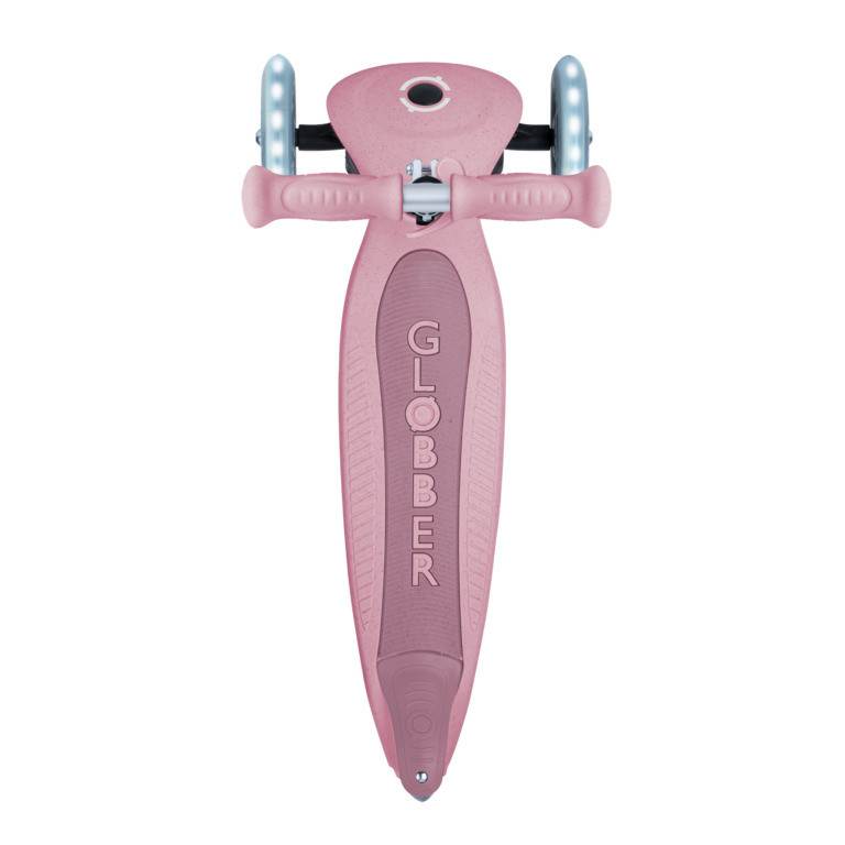 Tato tříkolová dětká koloběžka Primo Foldable Lights spojuje radost z pohybu s ekologickými hodnotami. Je vyrobena ze 60 % z recyklovaného plastu a z bioplastu z pšeničné slámy, což zajišťuje nižší dopad na životní prostředí. Model je vybaven předními LED kolečky, která využívají čistě kinetickou energii pohybu – svítí bíle a zcela bez potřeby baterií. Koloběžka je vhodná pro děti od 3 let.
